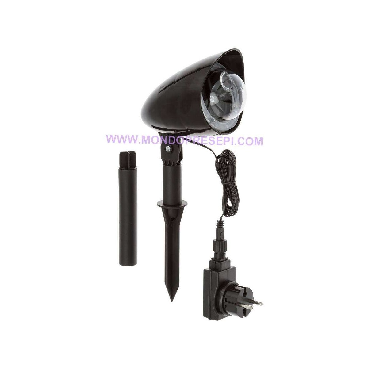 Proyector GARDEN MERRY CHRISTMAS 1x1W LED BLANCO, a 5 metros ilumina un área de 5x1,5m, Efecto de movimiento Rotatorio Automático, Cuerpo y estaca de Plástico, transformador 6V, incluido, uso exterior.