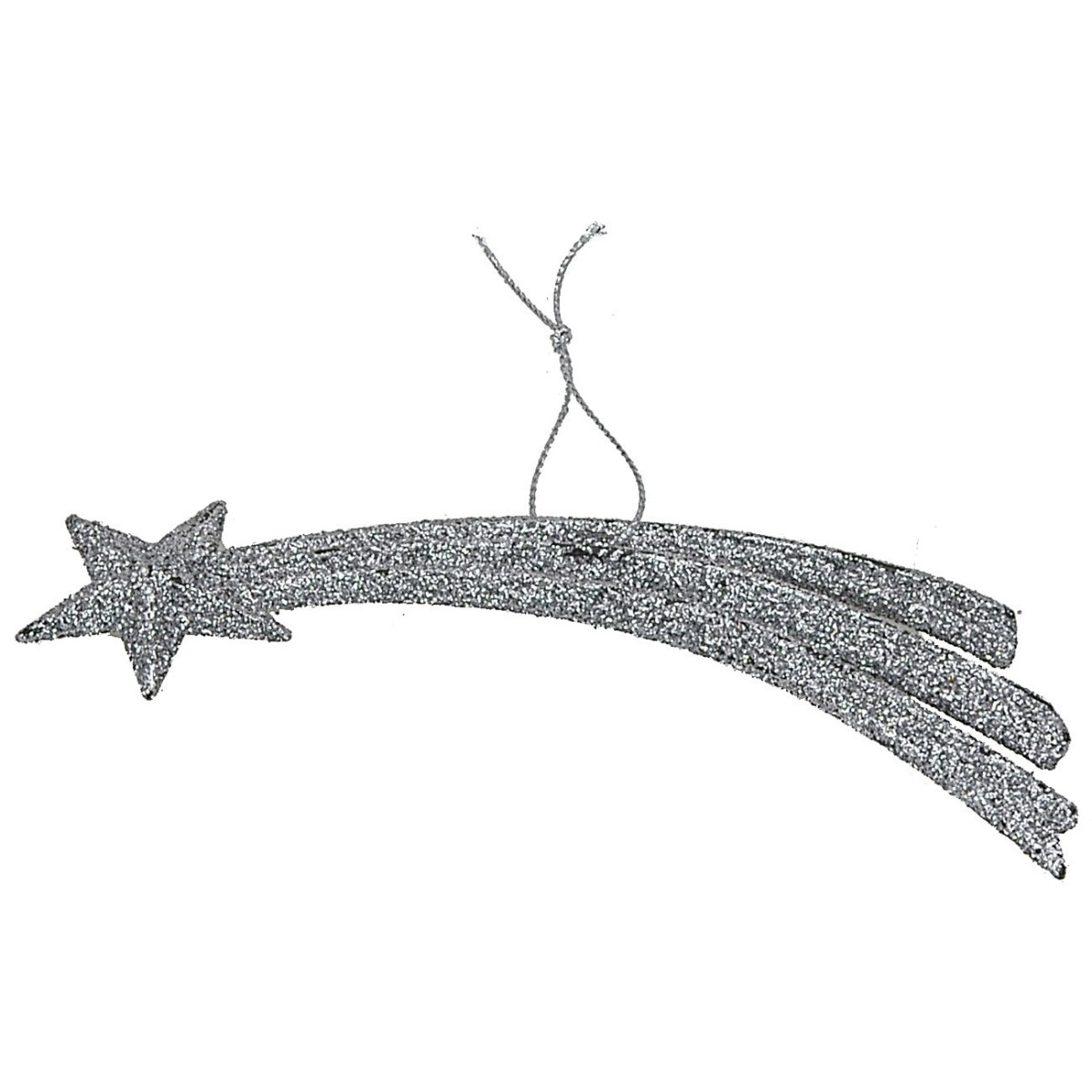 Estrella cometa para colgar con brillantina de color plata, ideal para colocar sobre la cabaña que alberga el Nacimiento en el belén.