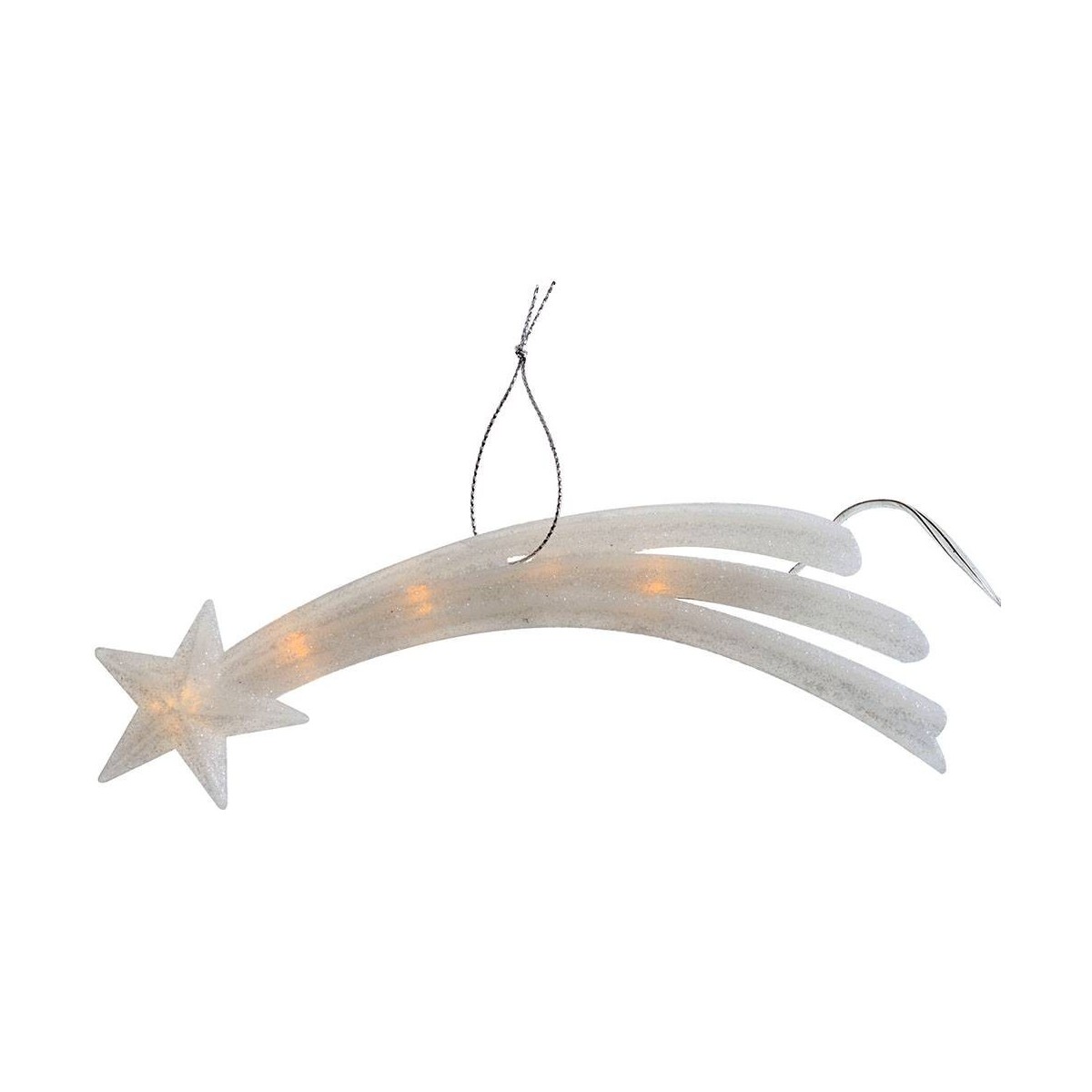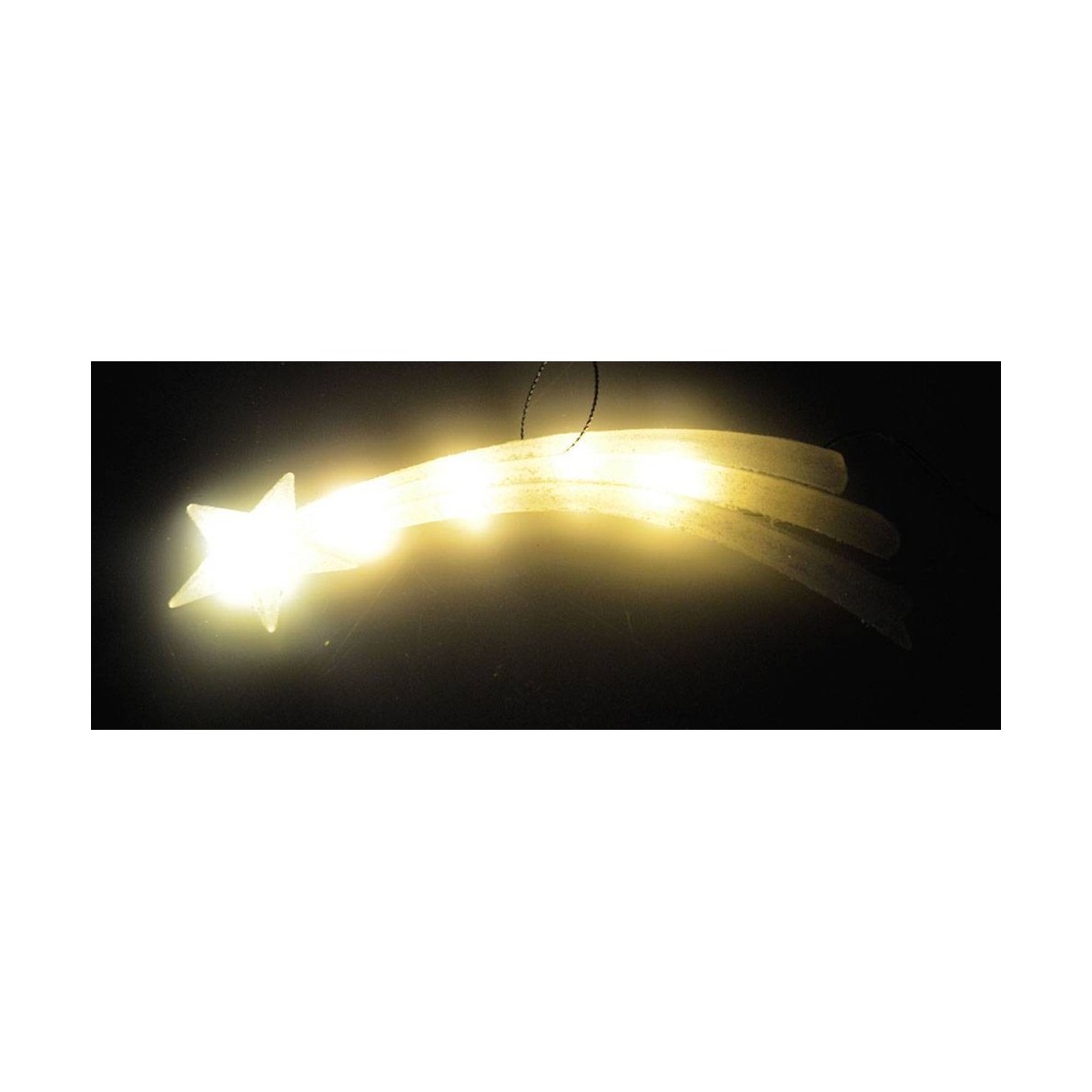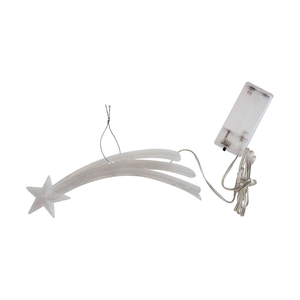 Estrella cometa con LED de luz cálida parpadeante, funciona con baterías (no incluidas 2xAA) con interruptor para encendido y apagado.
