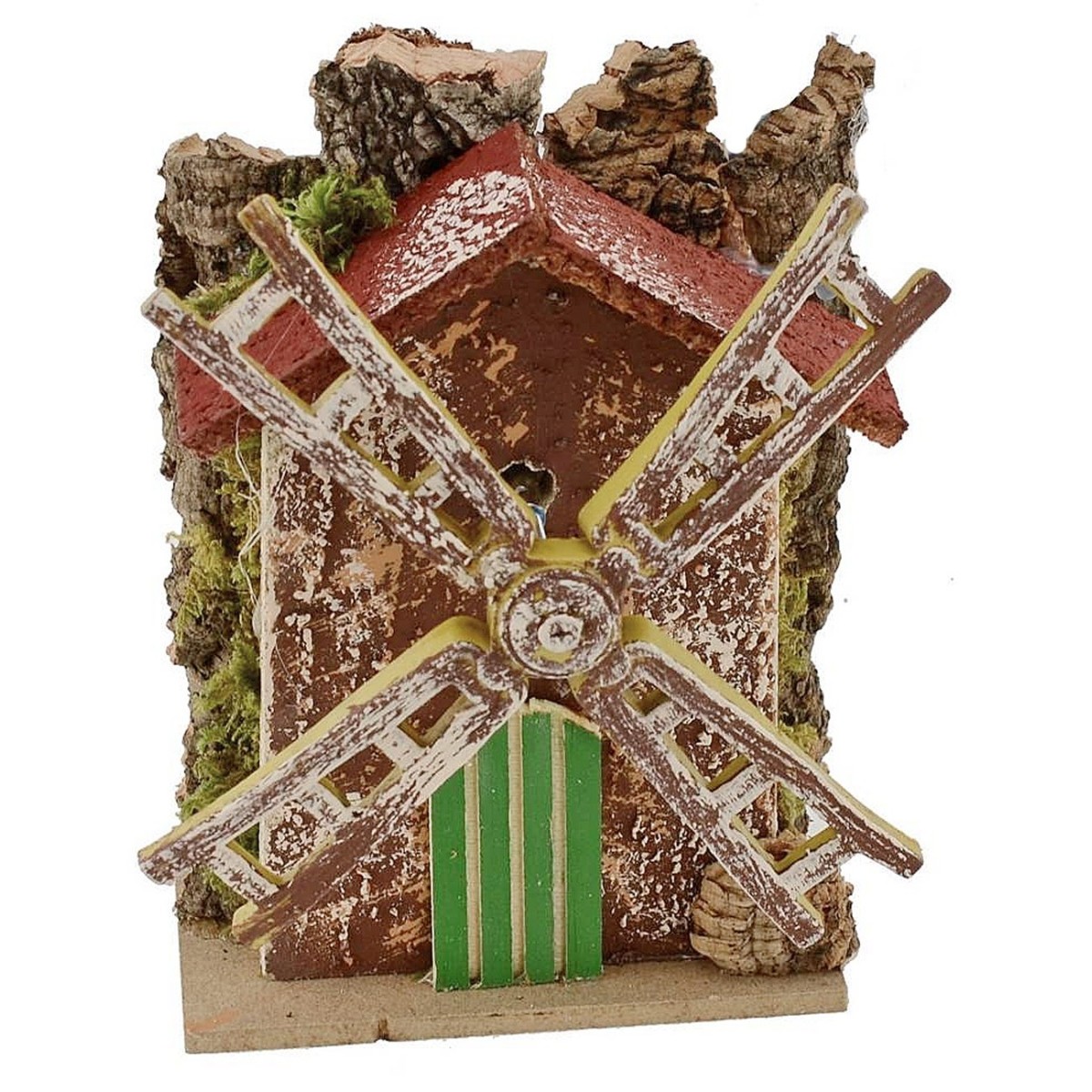 Molino de viento para belén, realizado en madera, corcho y musgo, funcionando con corriente. Recomendado para estatuas de altura 4-6 cm.