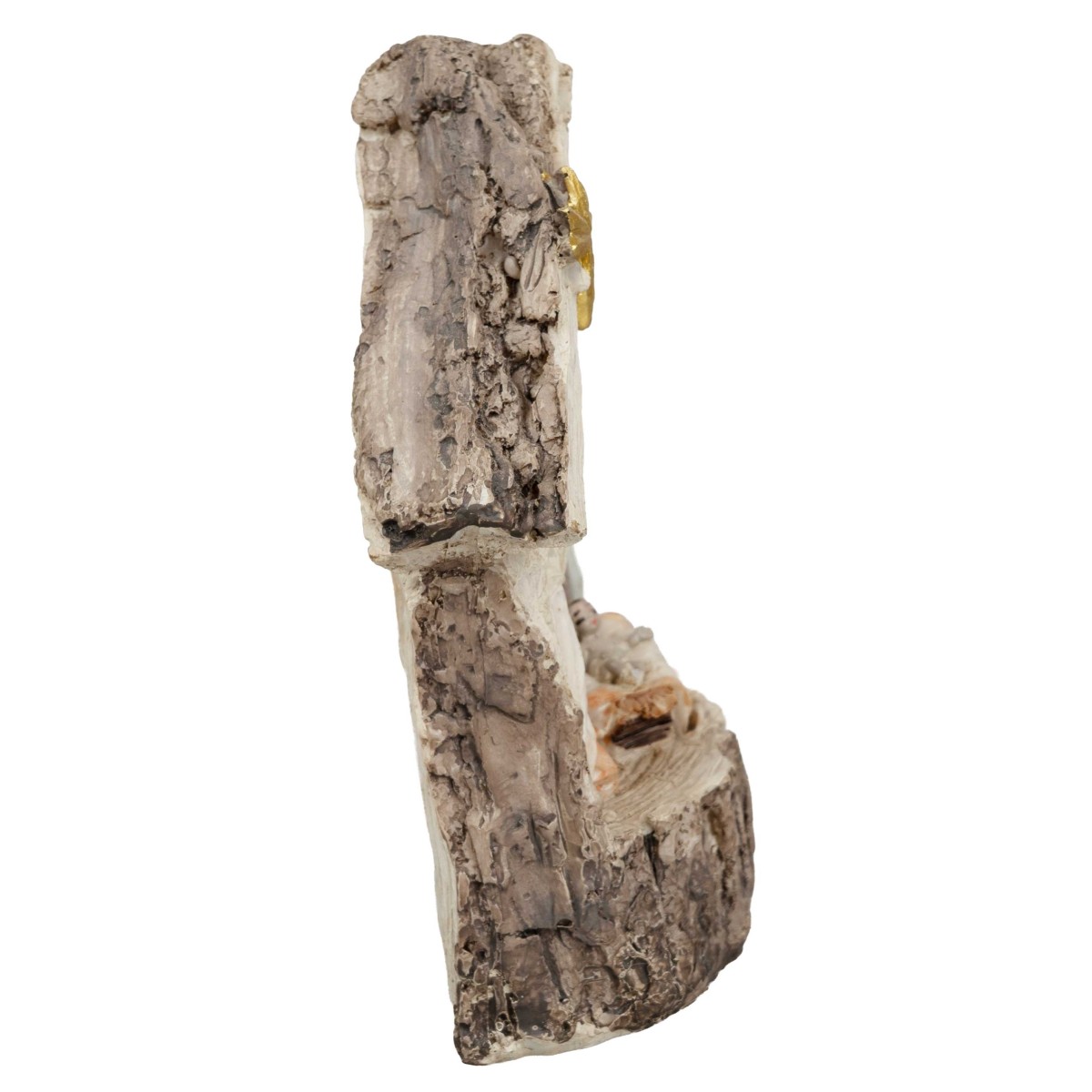 En el interior están presentes María, José y el Niño Jesús en una composición armoniosa y recogida, embellecida con una estrella dorada aplicada en el techo.