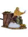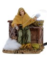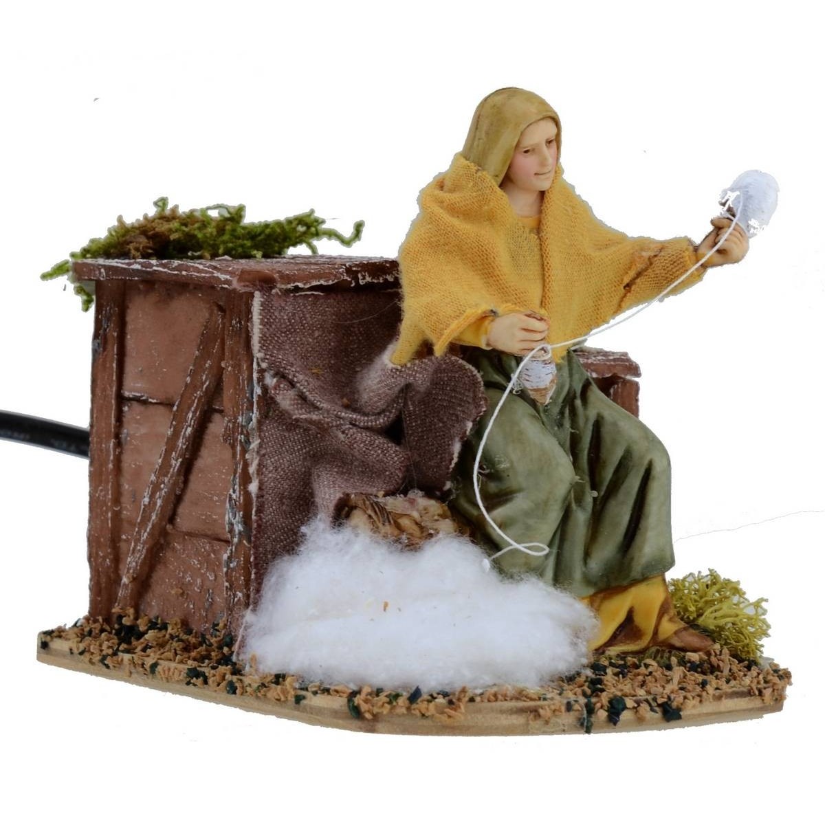 Mujer en movimiento hilando lana serie 10 cm Landi Moranduzzo. Estatua realizada en Italia, bien acabada en los detalles con manto de tela y rostro muy expresivo. Figura adecuada para el Belén.