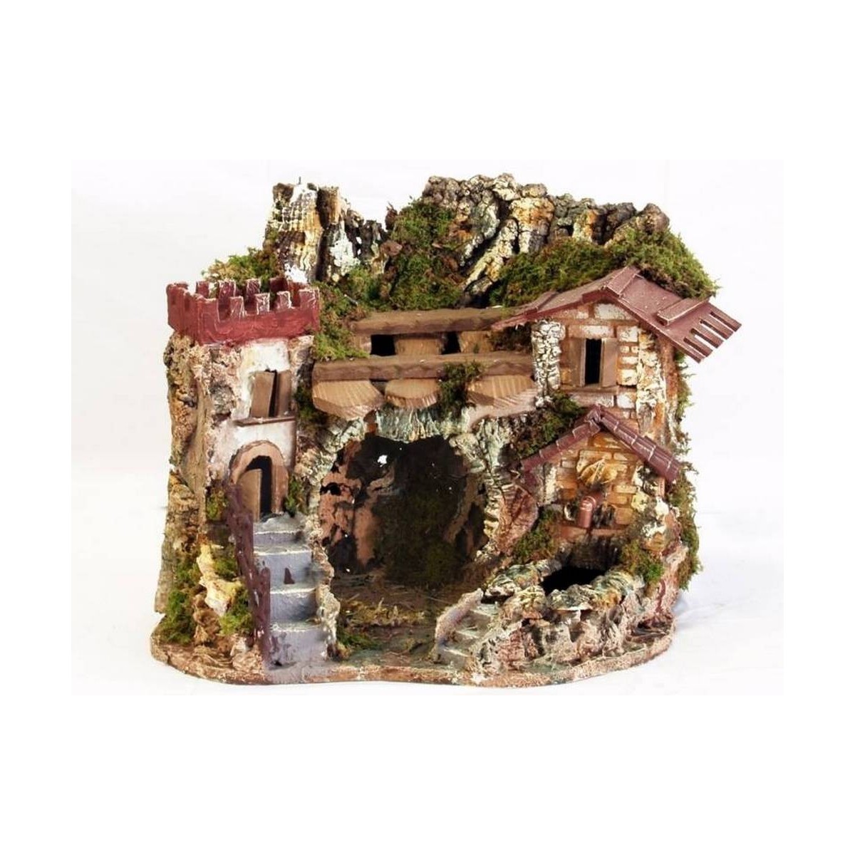 Pesebre artesanal de estilo clásico napolitano, caracterizado por una fuente funcional con corriente y la cueva central. La escenografía está bien acabada en los detalles: en el piso inferior se encuentra la cueva, donde será posible colocar estatuas de Natividad con una altura recomendada de 8 cm, según sus gustos y preferencias, algunas de las cuales se pueden ver en los productos relacionados. Además, siempre en el piso inferior, cerca de la fuente, es ideal colocar estatuas de la misma dimensión recomendada. Gracias a unas escaleras se accede a la parte superior donde encontramos una vivienda. Recordamos, además, que la serie Landi Moranduzzo de 8 cm tiene una altura real de aproximadamente 7 cm. Además, el uso del musgo y la corteza hace que el paisaje sea muy realista, ya que está lleno de vegetación verde y paredes rocosas circundantes. Producto realizado enteramente por manos artesanas expertas. Artículo realizado y pintado a mano enteramente en Italia por manos artesanas expertas, utilizando corcho, madera y musgo.