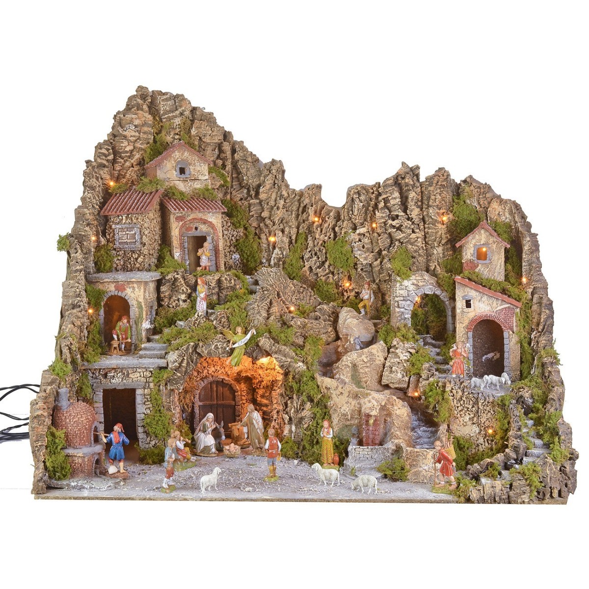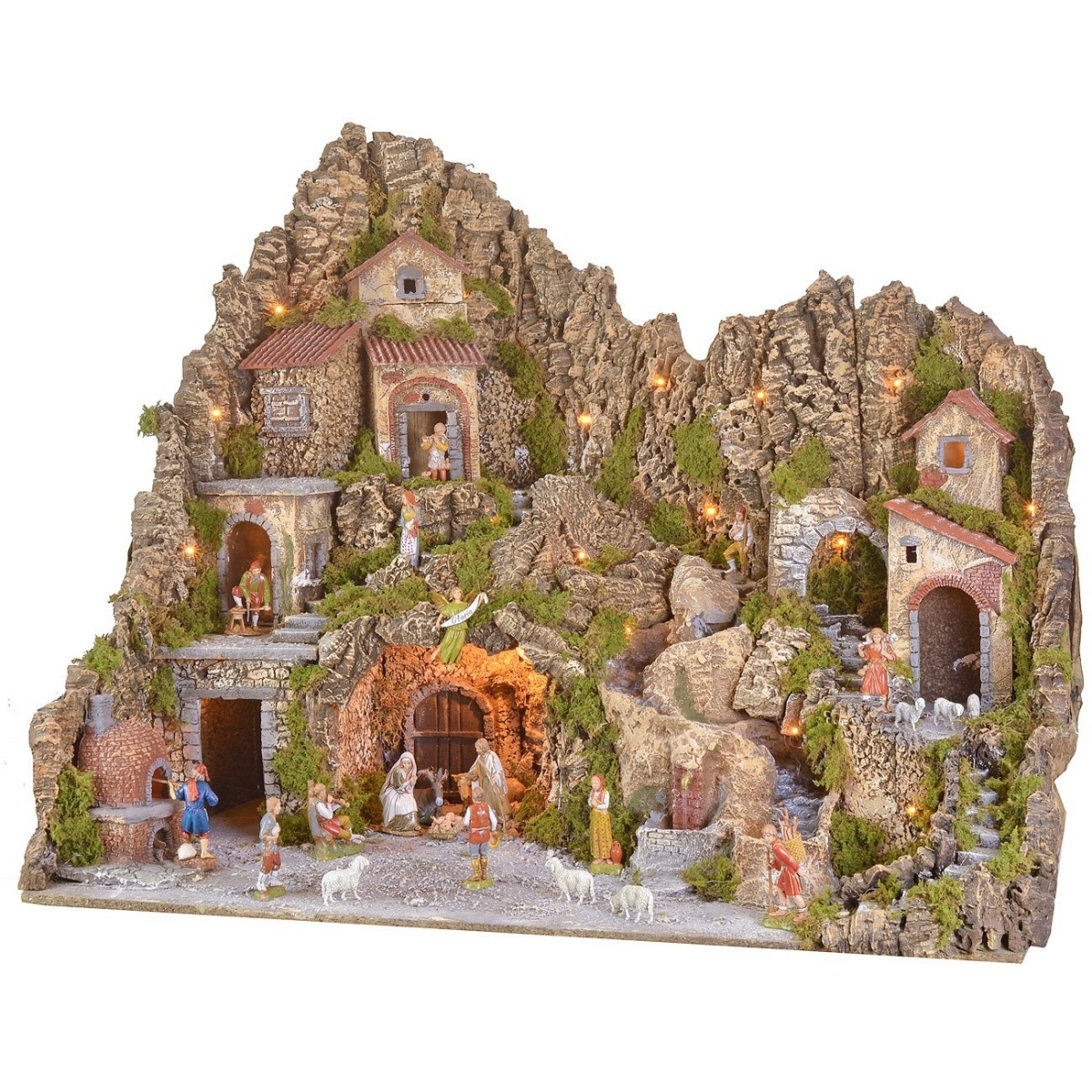 La ambientación presenta en el centro la natividad en la cueva, escaleras para llegar al piso superior, una cascada a la derecha y viviendas que se extienden a lo largo de toda la subida.