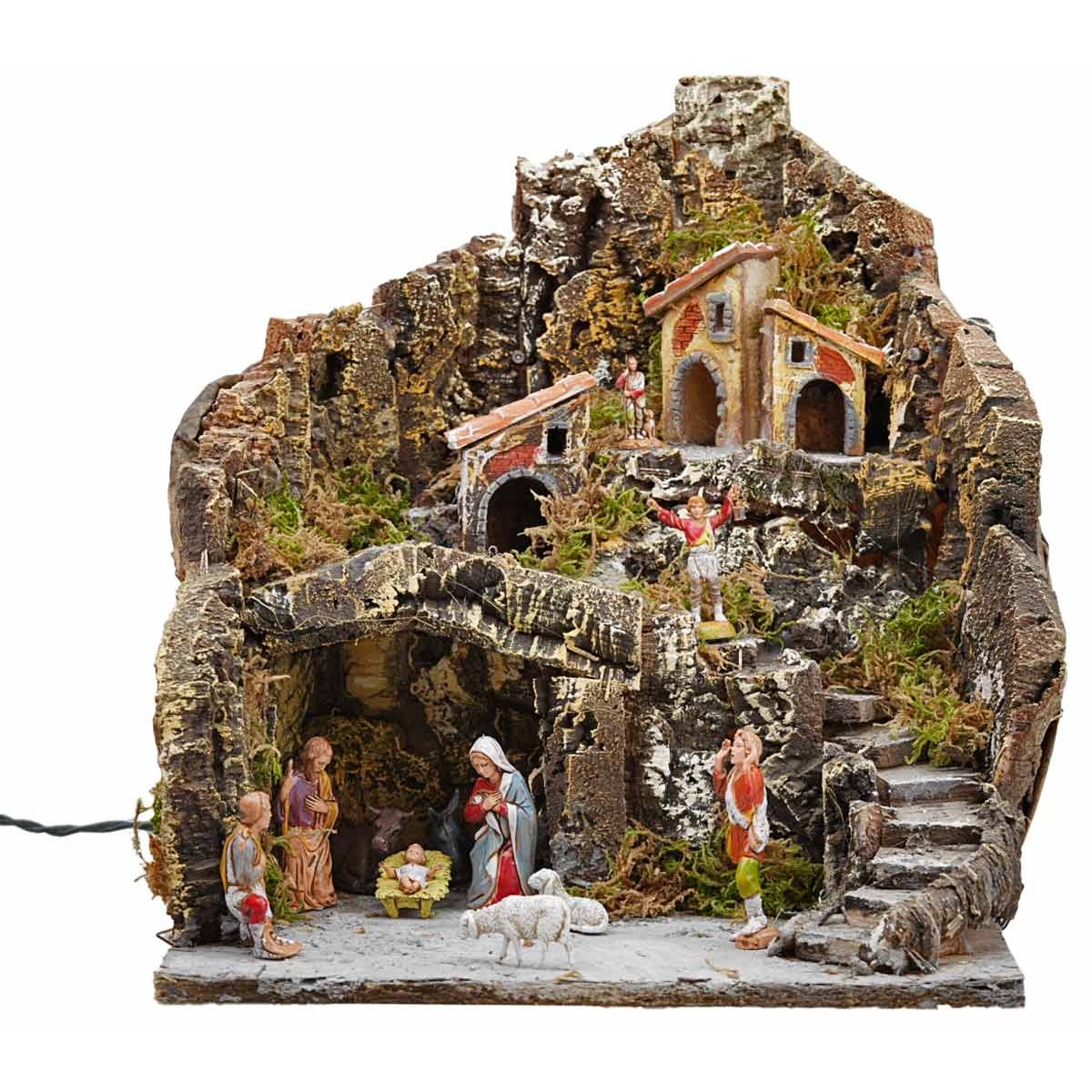 Belén artesanal iluminado completo con figuritas Landi Moranduzzo serie 8 cm.