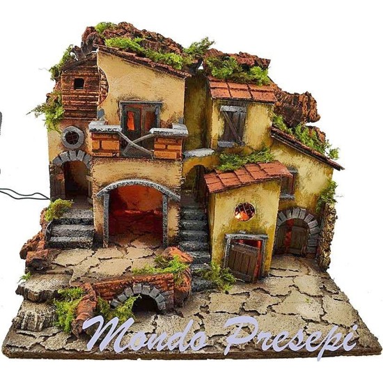 Pueblo con luces que funcionan con corriente, recomendado para estatuas de 6-7-8 cm.