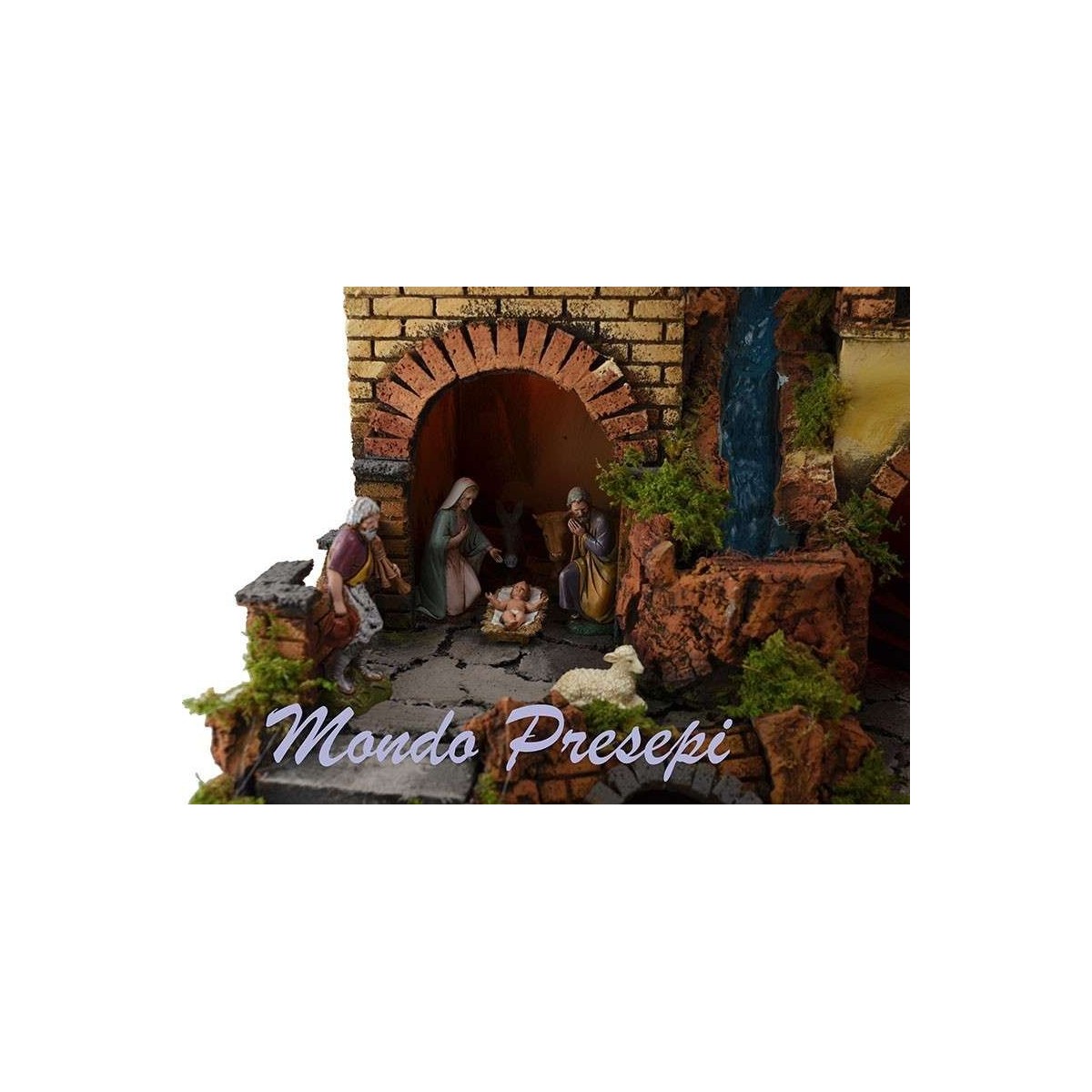 Belén con pueblo iluminado con cascada 60x40 Mondo Presepi