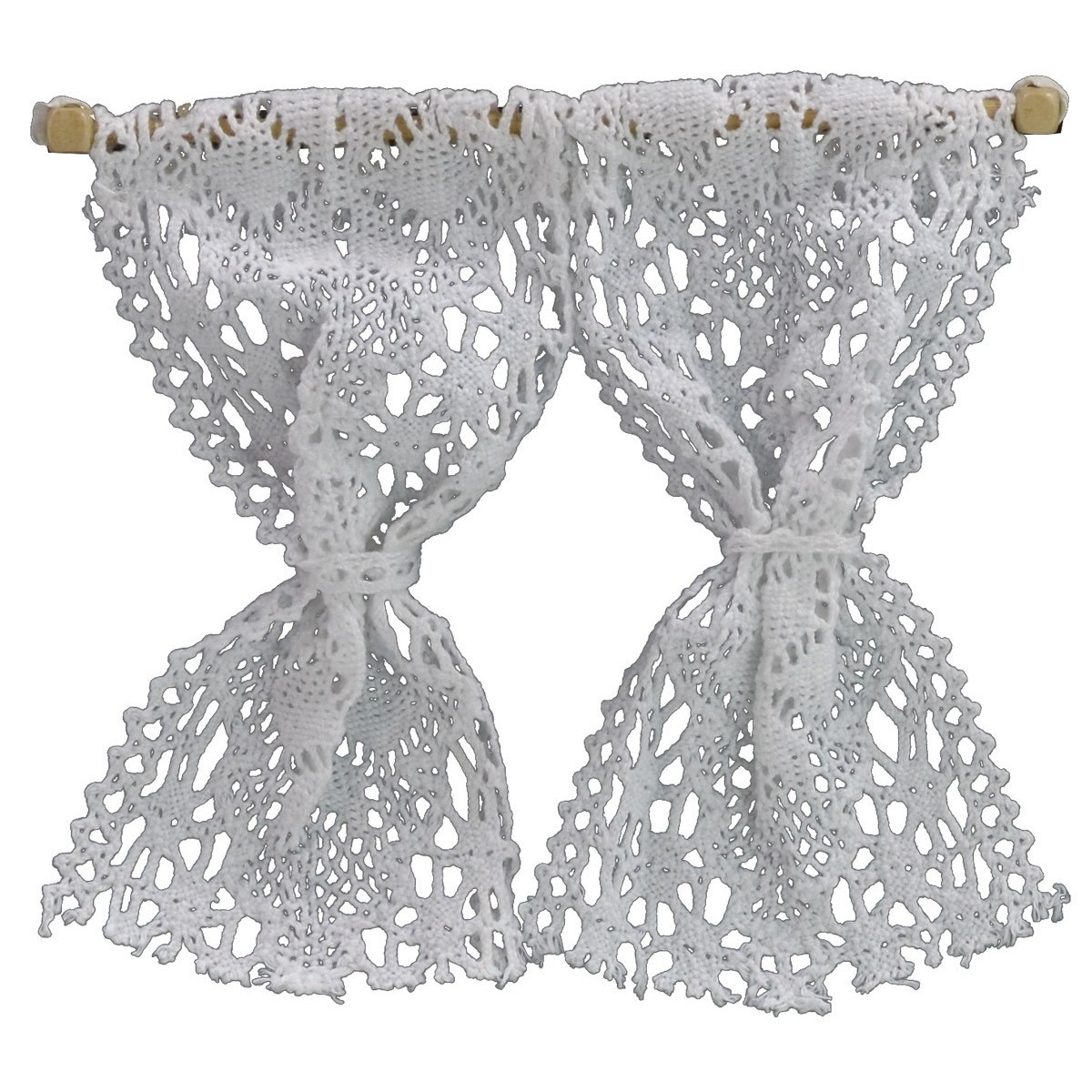 Cortina blanca de encaje montada en barra y fruncida, adecuada para ventanas y puertas para belén de bricolaje y casas de muñecas.