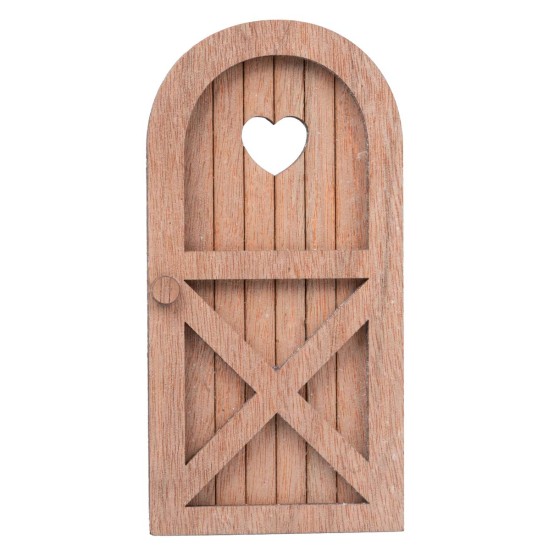 La parte inferior presenta una decoración en forma de 'X' en relieve. Recomendada para figuritas de altura 10-12 cm, esta puerta es ideal para crear escenografías en belenes hechos a mano u otros dioramas.