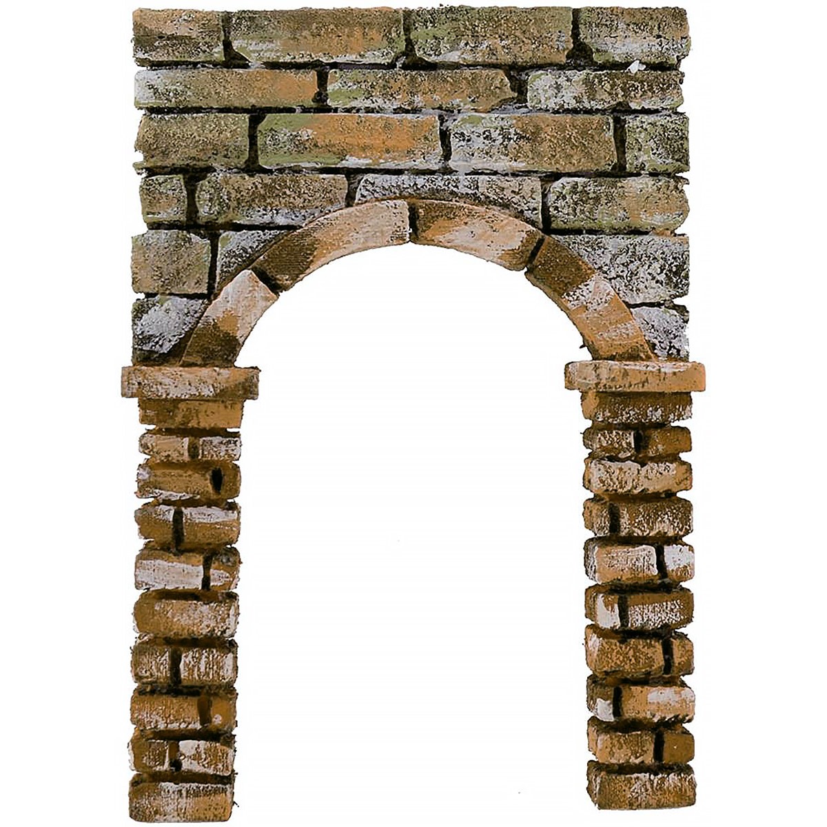 Arco de poliestireno, ideal para realizar elementos escenográficos en el pesebre. La altura del punto más alto del pasaje es de 20,5 cm, por lo tanto, se puede utilizar con estatuas de altura a partir de 12-15 cm. El artículo, al estar realizado y pintado completamente a mano, puede variar los colores respecto a la foto.