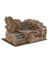 Escalera artesanal para belén popular con doble escalera, murallas laterales y muralla trasera, realizada en madera, corcho y musgo, recomendada para estatuas de altura 10 cm. Este elemento hará que su belén luzca de manera majestuosa.