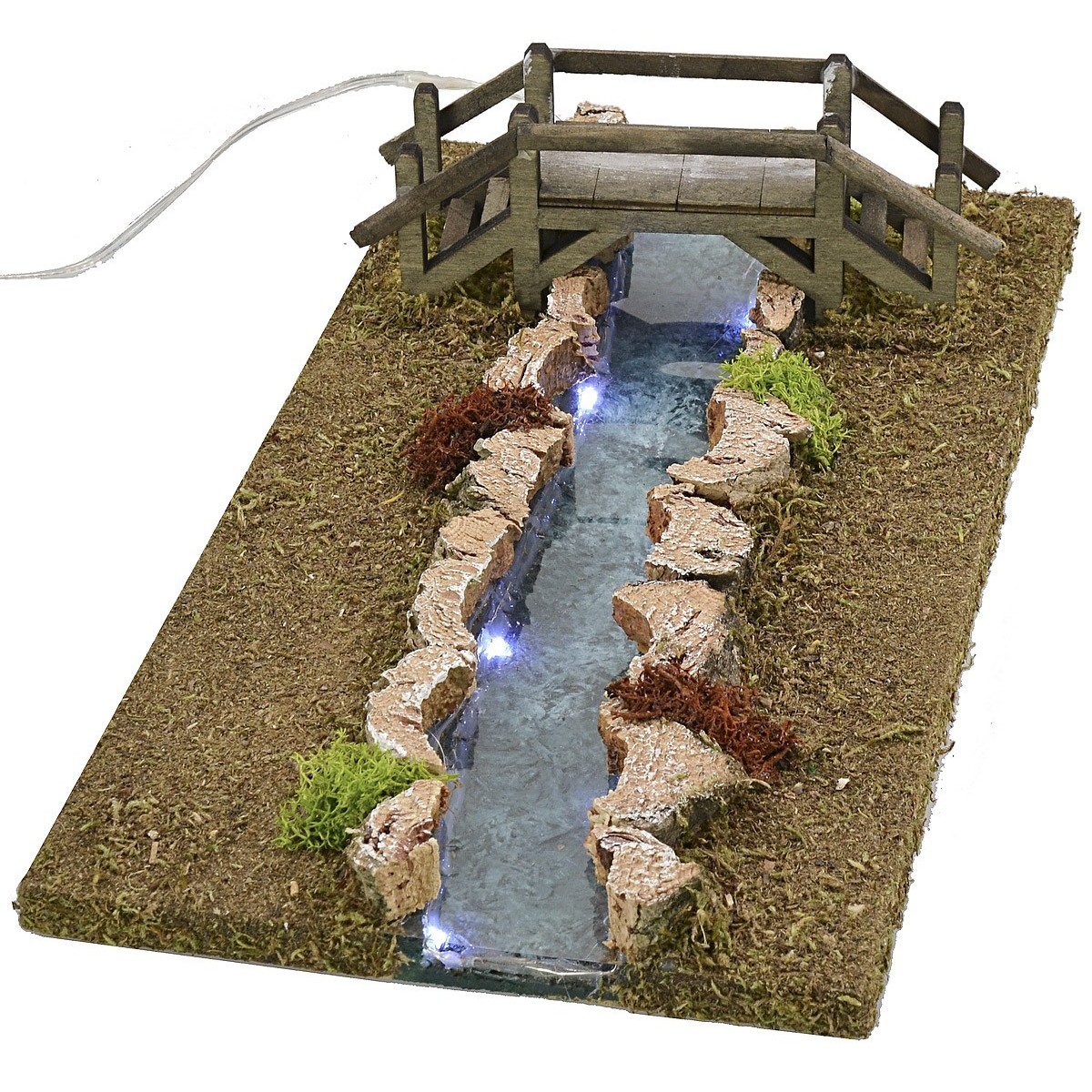 Arroyo recto efecto profundidad para Pesebre iluminado a batería con un característico puente de madera sobre el cual se pueden colocar figuritas. La iluminación con microled de luz fría hace que este río sea muy original y tiene la capacidad de atraer inmediatamente la atención de las personas. Este artículo forma parte de una serie componible que permite personalizar su propio curso de agua con muchas piezas que encontrará en los productos relacionados debajo de la tabla.