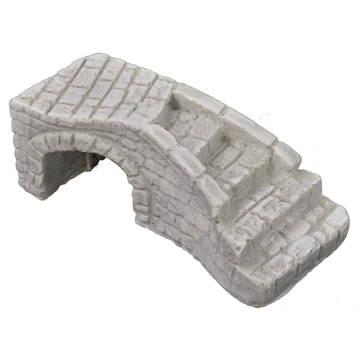 Escalinata de yeso cerámico con puente, ideal para embellecer las escenografías de su Belén hecho a mano. Recomendada para estatuas de altura 8-10 cm.