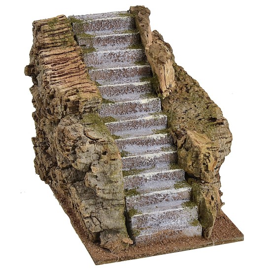 Escalera artesanal para belén realizada en poliestireno, madera y corcho, recomendada para estatuas de altura 10-12 cm. Este elemento conferirá majestuosidad a la escenografía en la que será colocado.
