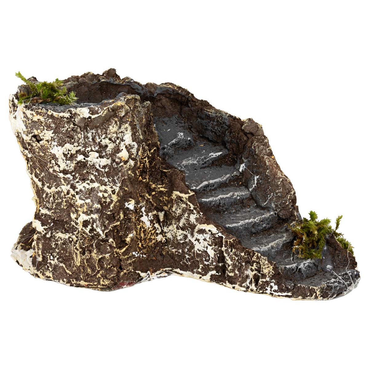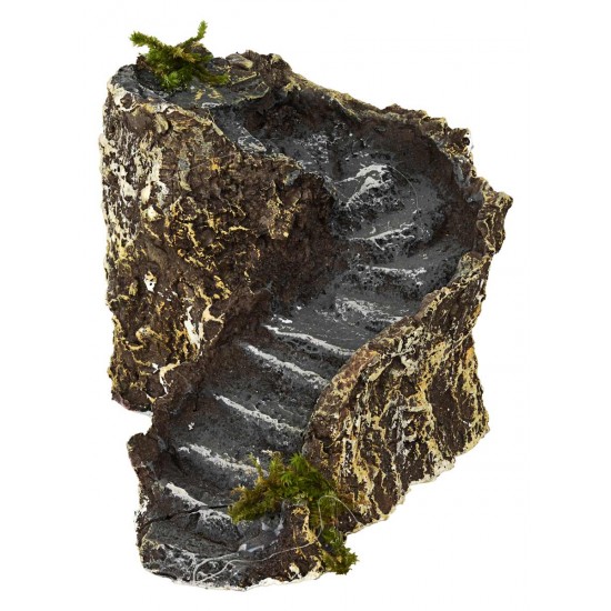 Escalera curva a la izquierda, de aspecto rocoso, ideal para belenes.