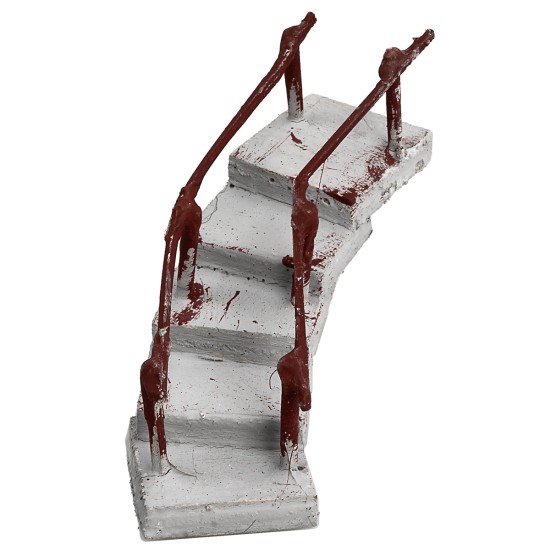 Escalera curva de madera con efecto cemento, orientada hacia la izquierda, recomendada para figuritas de altura 5-6 cm.
