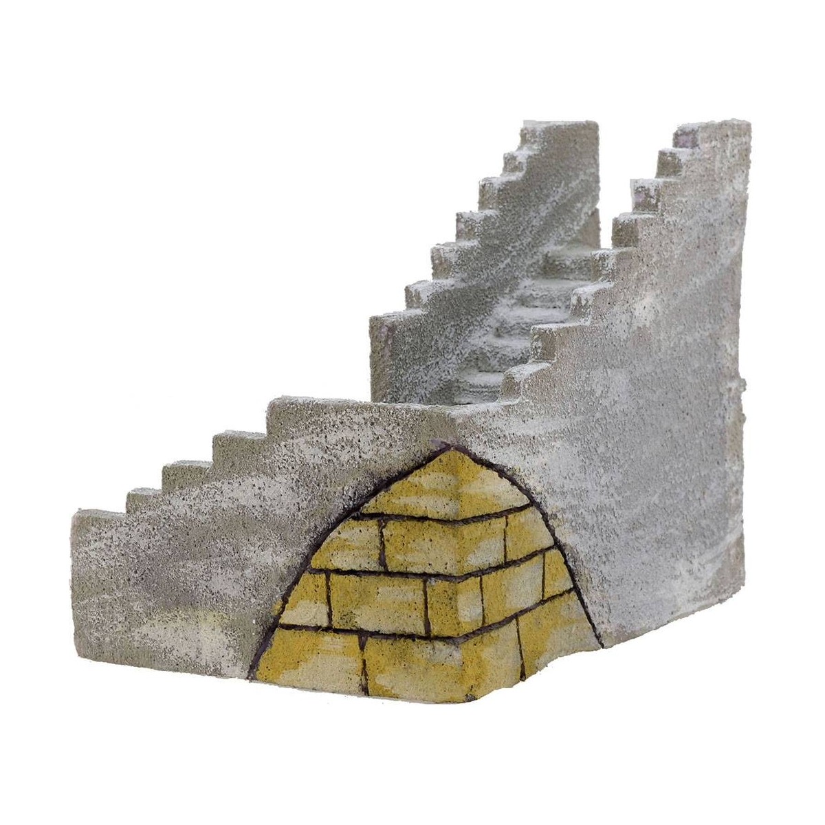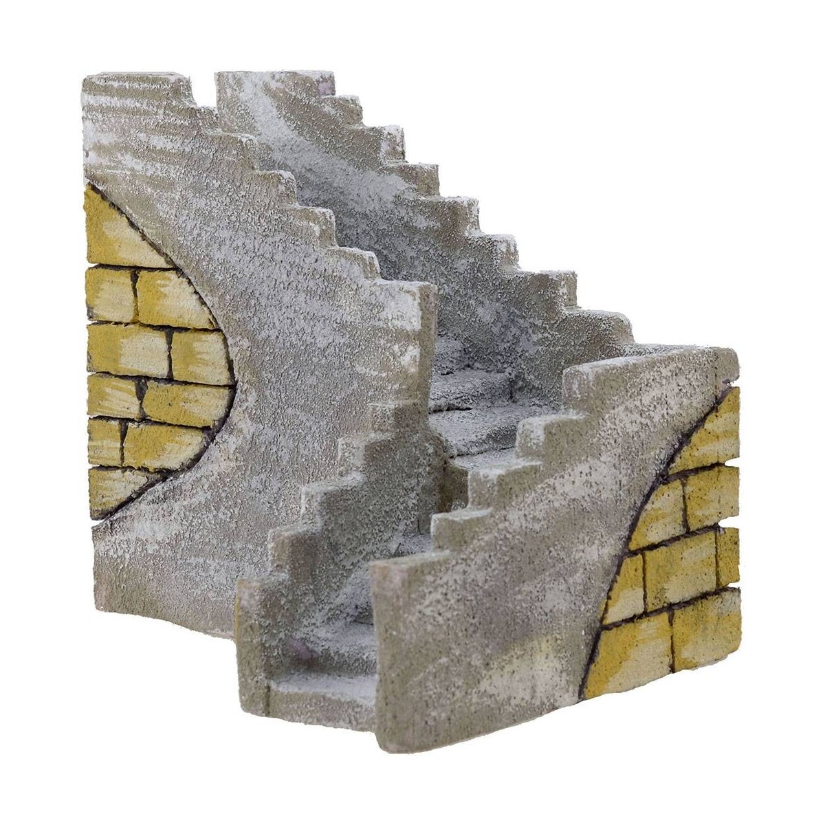 Escalera en ángulo izquierdo para belén, con paredes efecto mampostería. Se precisa que, al ser un producto artesanal, los tonos de los colores pueden variar según la producción.