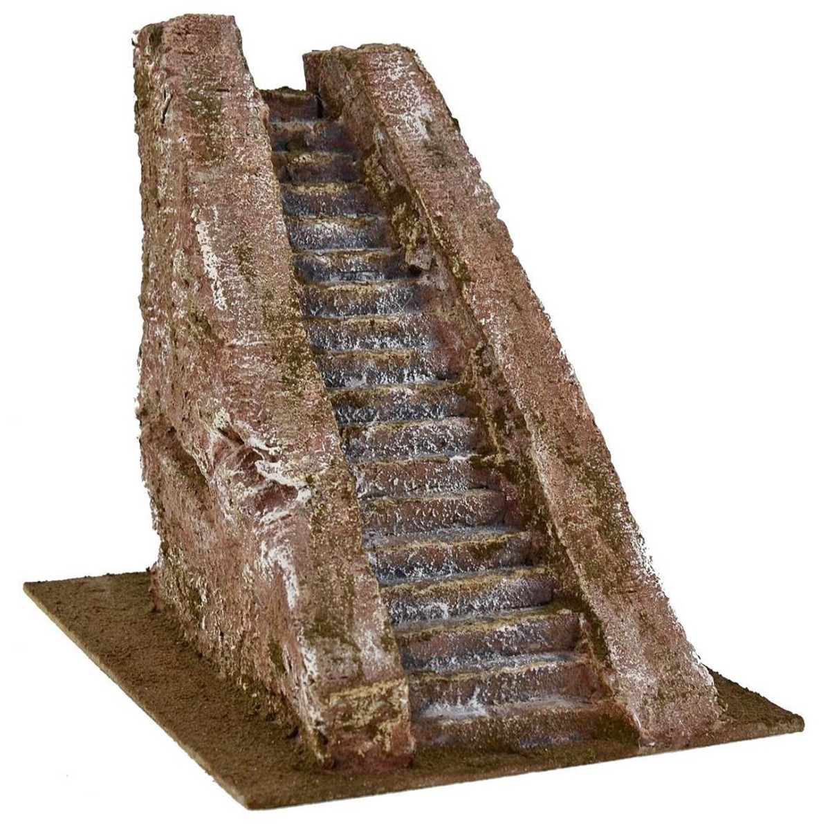 Escalinata para pesebre tipo Popular insertada en un muro de roca, con 18 escalones empinados en forma de embudo. Para la realización artesanal de este producto hemos utilizado madera y poliestireno. Se recomiendan figuritas con una altura de 10-12 cm.