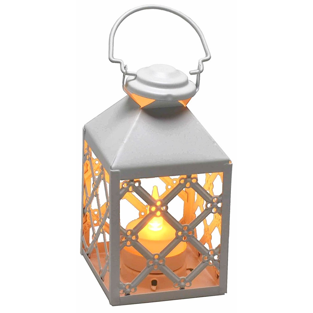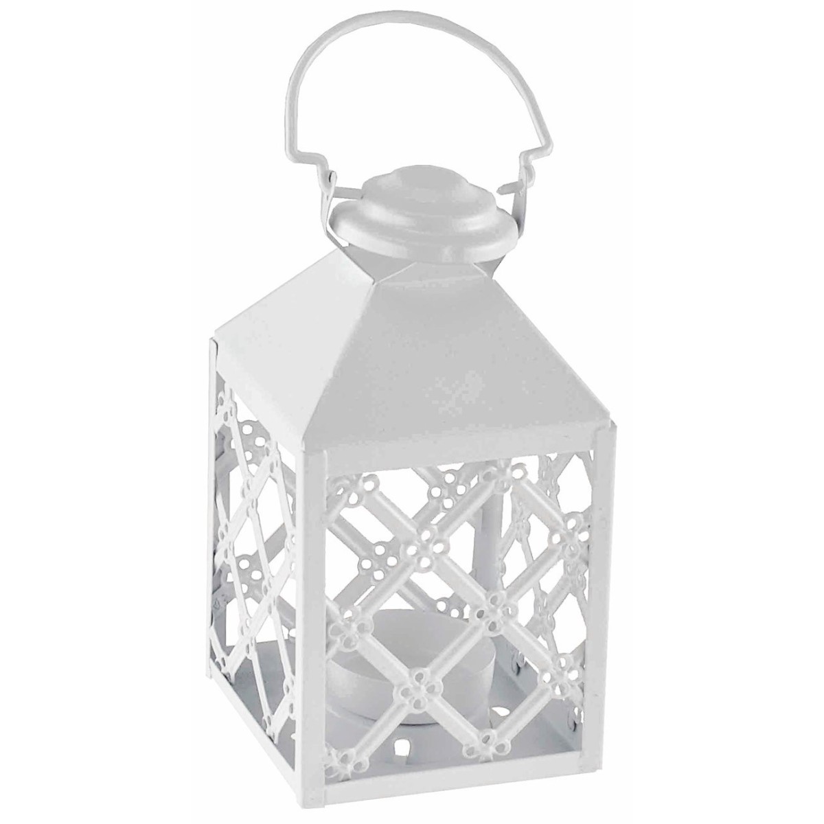 Linterna blanca de metal con soporte para vela 7,5x7,5 x17,5 h