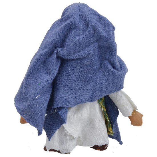 Donna in terracotta snodato serie 10-11 cm vestita con abiti in tessuto. La statua è nella posizione in piedi con il busto e le braccia snodate, risulta ideale per la realizzazione di movimenti per il presepe fai da te o per essere utilizzare fissa e riposta nella posizione desiderata. L'articolo è realizzato completamente a mano, pertanto, potrebbero variare i colori rispetto alla foto.