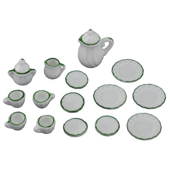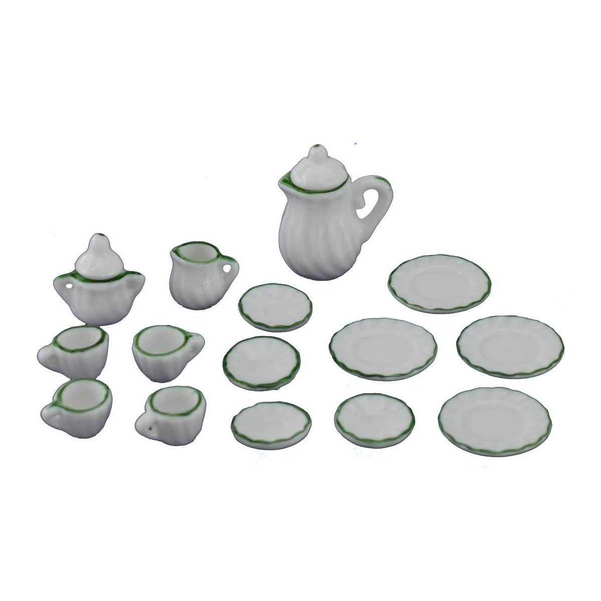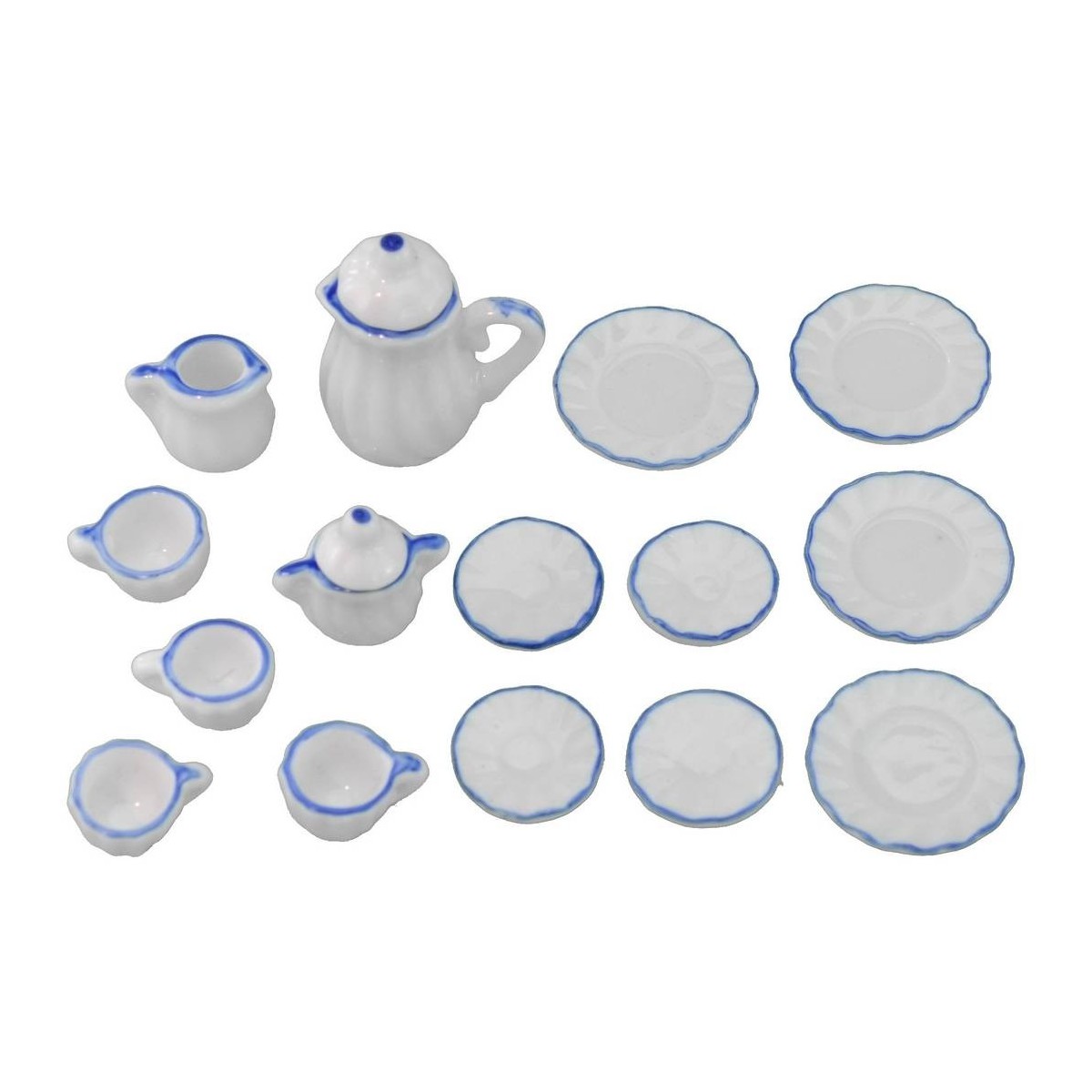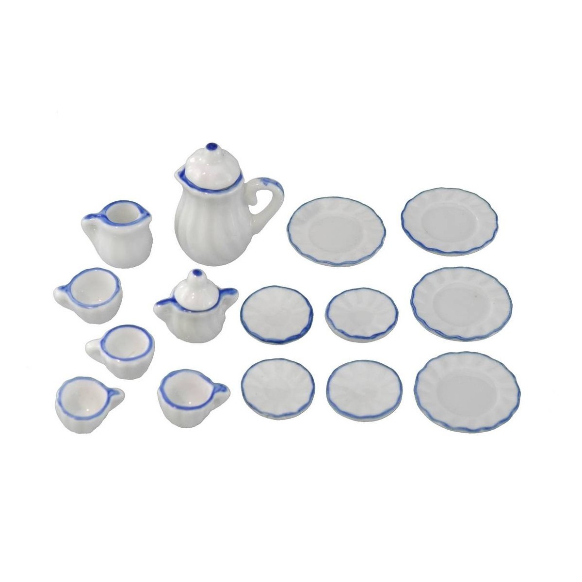 Set da tè e caffè in porcellana composto da 15 pezzi in colorazioni assortite, consigliato per statue di altezza 12-14 cm.