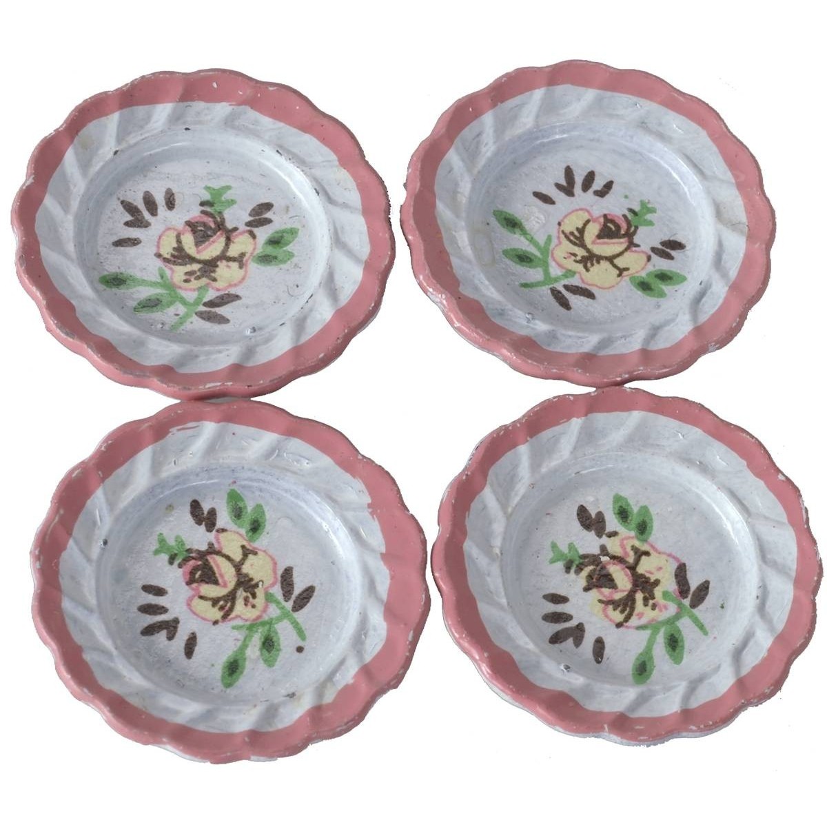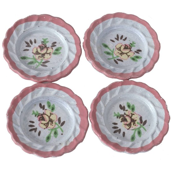 Set 4 piatti in porcellana con centro decorato floreale, consigliati per statue di altezza 10-12 cm.
