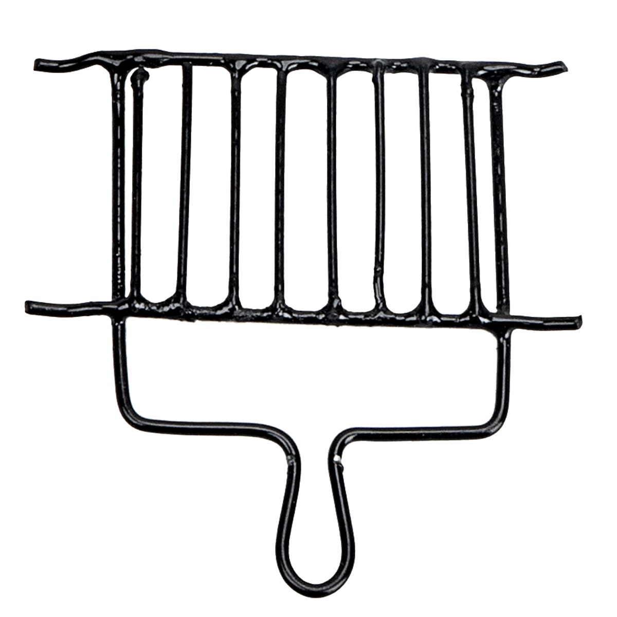 Accessorio in metallo nero realizzato per simulare le griglie utilizzate nei camini o nei forni. Ideale per completare ambientazioni di cucine, botteghe o scene di fuoco nel presepe.