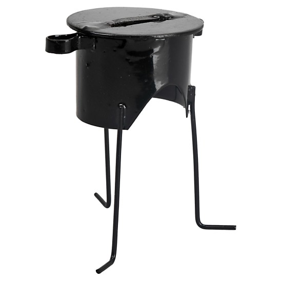 Pentolone nero in metallo con treppiede, consigliato per statue da 12-15 cm.