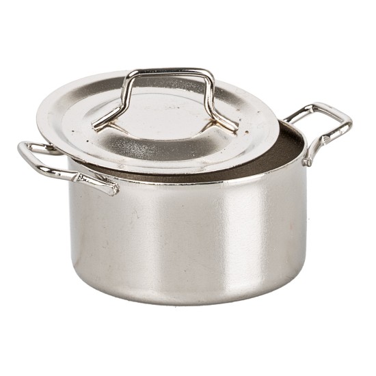 Pentola in metallo con coperchio e manici laterali, consigliata per statuine di altezza 8-10 cm.