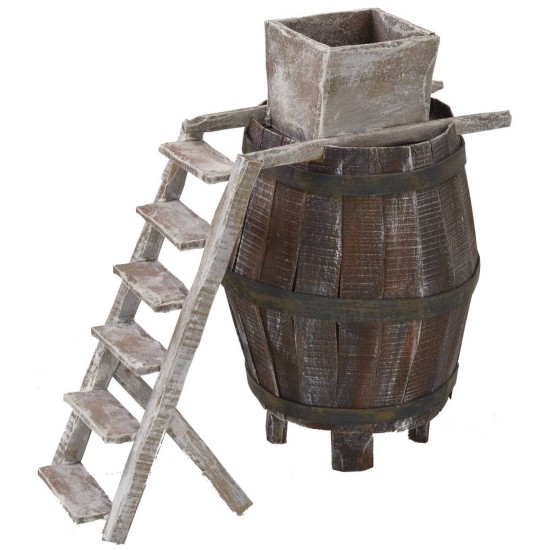 Ambientazione per Presepe, composta da una botte con macina per uva ed una scala per poterla raggiungere. Pregevole manifattura con struttura in legno, ottima per arricchire il proprio Presepe in modo unico ed originale. Questa articolo è stato realizzato da sapienti artigiani italiani per il Presepe classico popolare in legno. Si consiglia di abbinare il prodotto a statue da 10-12 h cm.