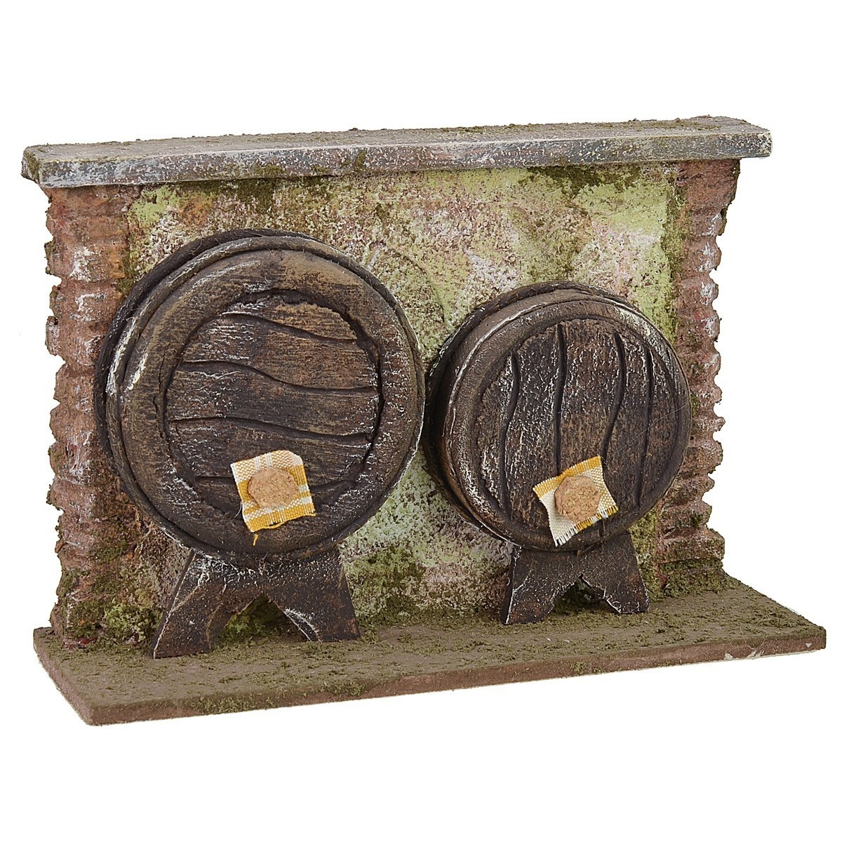 Muro con botti incastonate. Questo prodotto è stato realizzato da sapienti artigiani italiani per il Presepe classico popolare in legno. Si consiglia di abbinare all'articolo statue di altezza 12 cm.