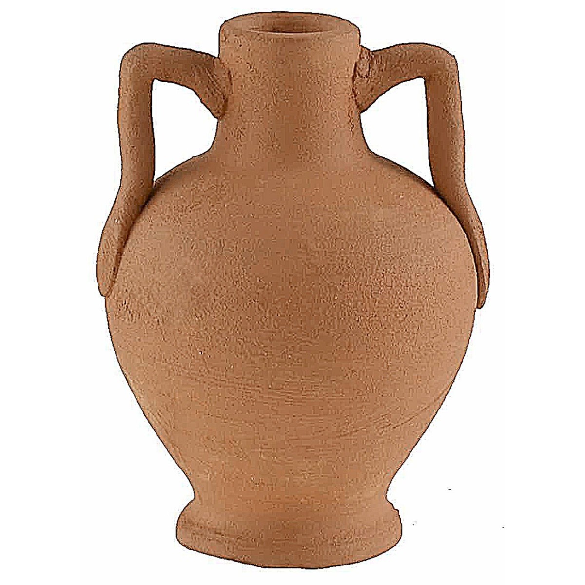 Anfora in terracotta con due manici consigliata per statuine con altezza da 15 a 20 cm. L'accessorio in miniatura è utile per decorare il presepe fai da te.