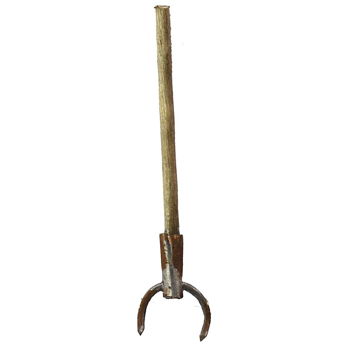 Attrezzo da contadino in metallo arrugginito con manico in legno anticato, essendo un prodotto interamente artigianale le misure e i colori possono variare leggermente rispetto alla foto, attrezzo consigliato per statue di altezza 6-6,5 cm.
