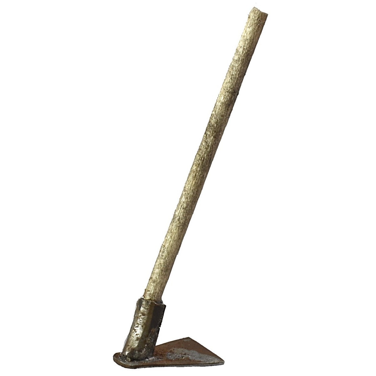 Attrezzo da contadino in metallo arrugginito con manico in legno anticato, essendo un prodotto interamente artigianale le misure e i colori possono variare leggermente rispetto alla foto, attrezzo consigliato per statue di altezza 8 cm.