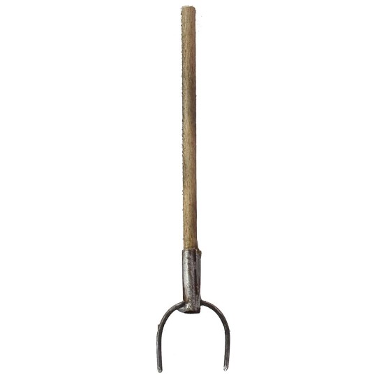 Attrezzo da contadino in metallo arrugginito con manico in legno anticato, essendo un prodotto interamente artigianale le misure e i colori possono variare leggermente rispetto alla foto, attrezzo consigliato per statue di altezza 8 cm.