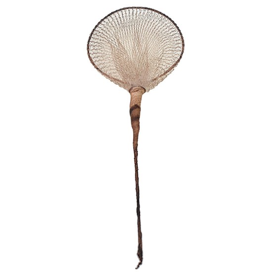 Guadino per pescatore con manico in legno e rete di forma tonda, consigliato per statue di altezza 12-15 cm.
