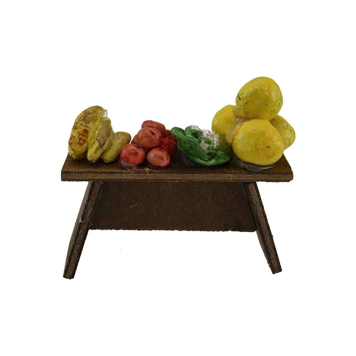 Banco con frutta e verdura assortita, consigliato per statue di altezza 8 a 10 cm.