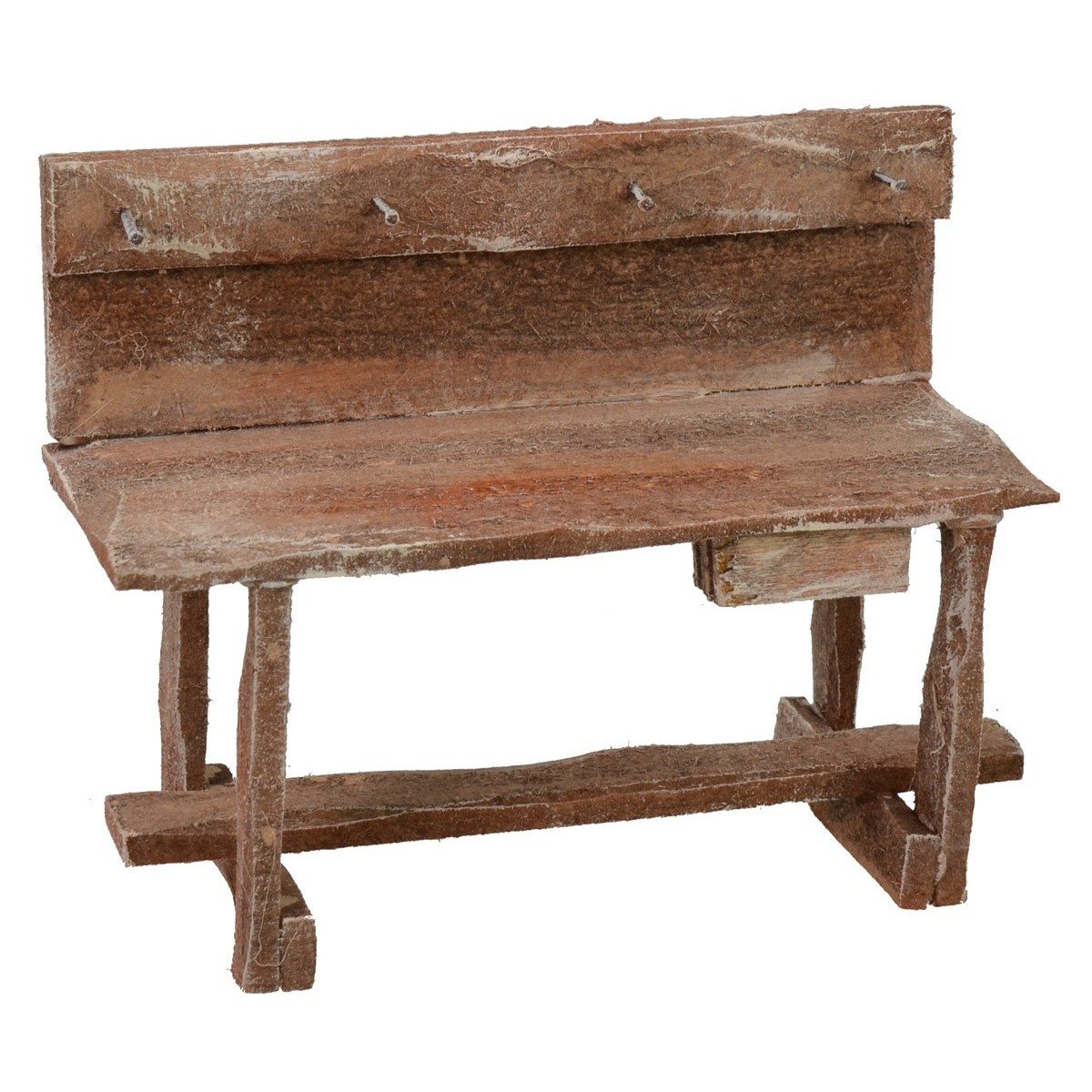 Banco da lavoro in legno con parete munita di chiodi dove appendere minuterie a piacimento come attrezzi da lavoro, l'articolo è stato realizzato artigianalmente ed è consigliato per statue di altezza cm 12.