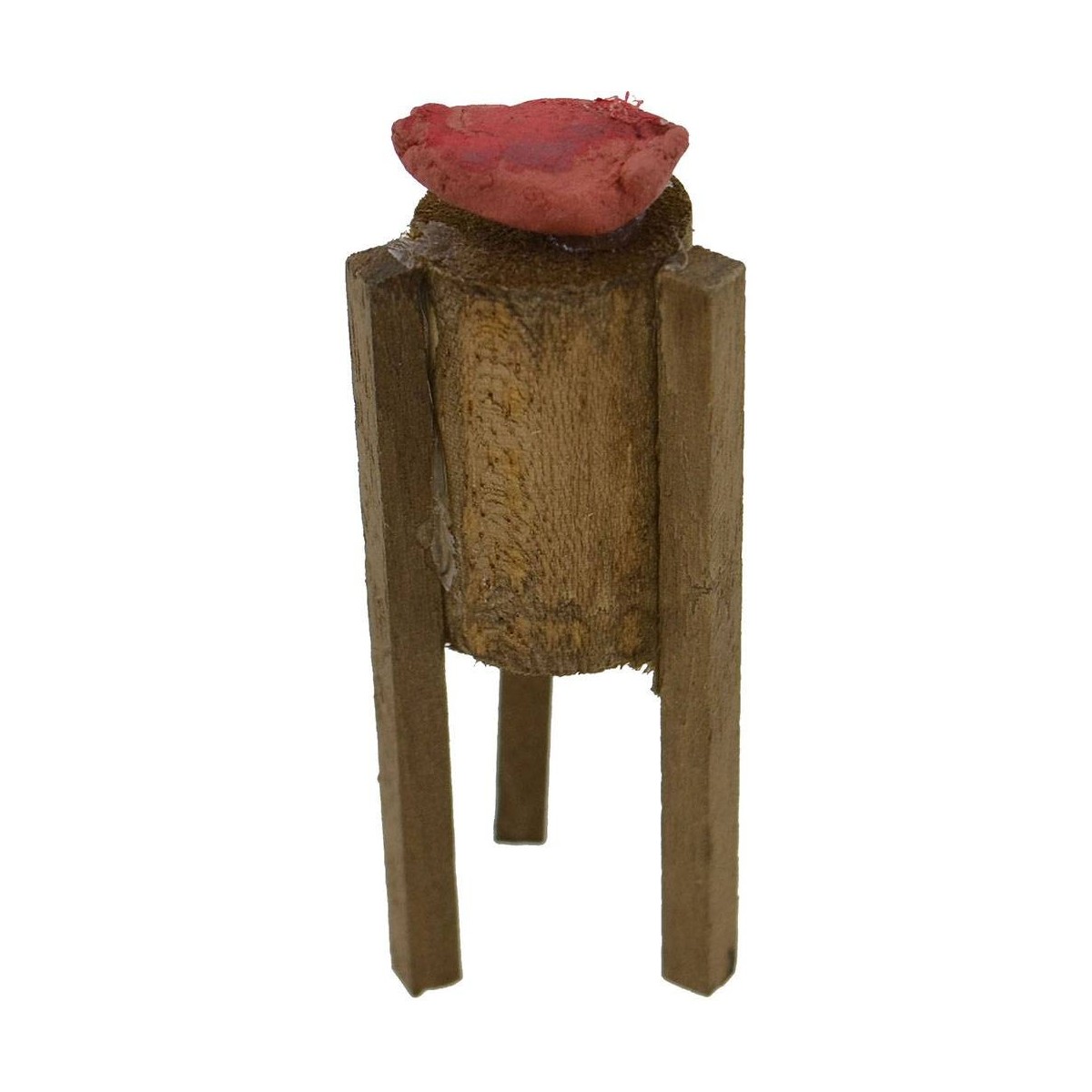 Ceppo in legno con carne per macellaio, accessori in miniatura per presepe.