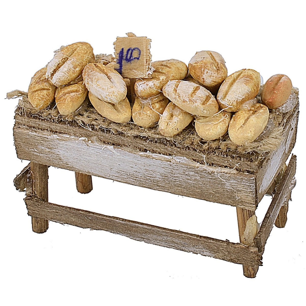 Banco con pane realizzato artigianalmente da sapienti mani italiane utilizzando il legno per la struttura e dipingendo a mano la terracotta per la minuteria. Il prodotto risulta ben rifinito nei dettagli ed è consigliato per statue di altezza 8-10 cm. Si precisa che essendo un articolo artigianale prodotto a mano potrebbe leggermente variare rispetto alla foto.