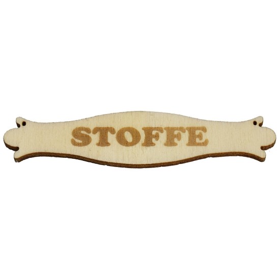 Insegna in legno con scritta "STOFFA" ideale da posizionare nei laboratori degli artigiani e/o commercianti presenti nel presepe.