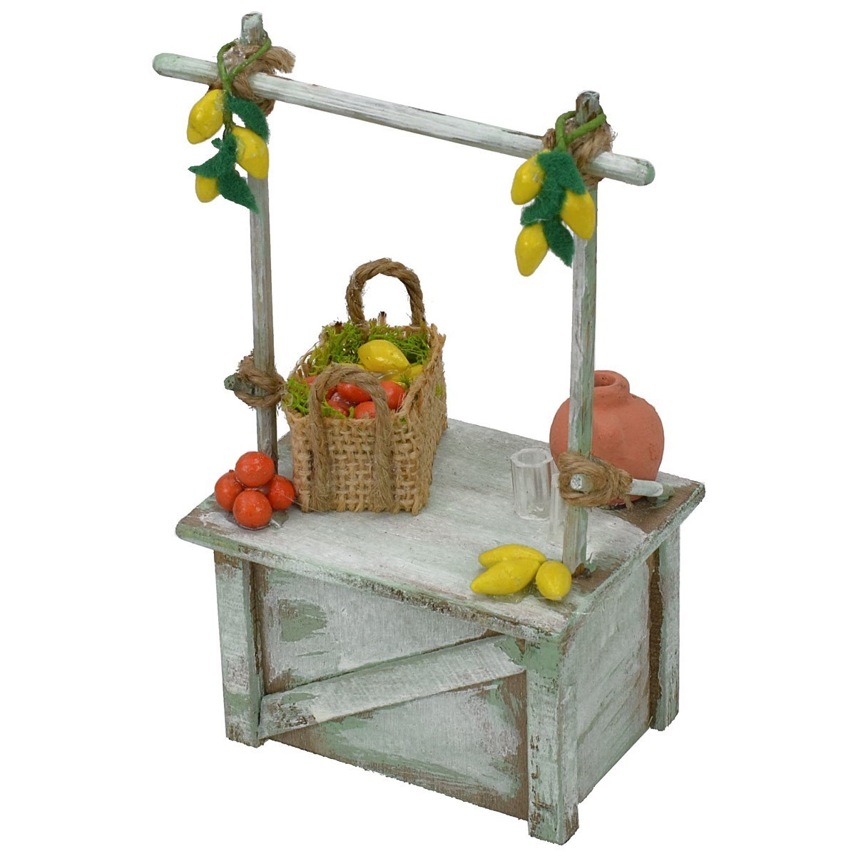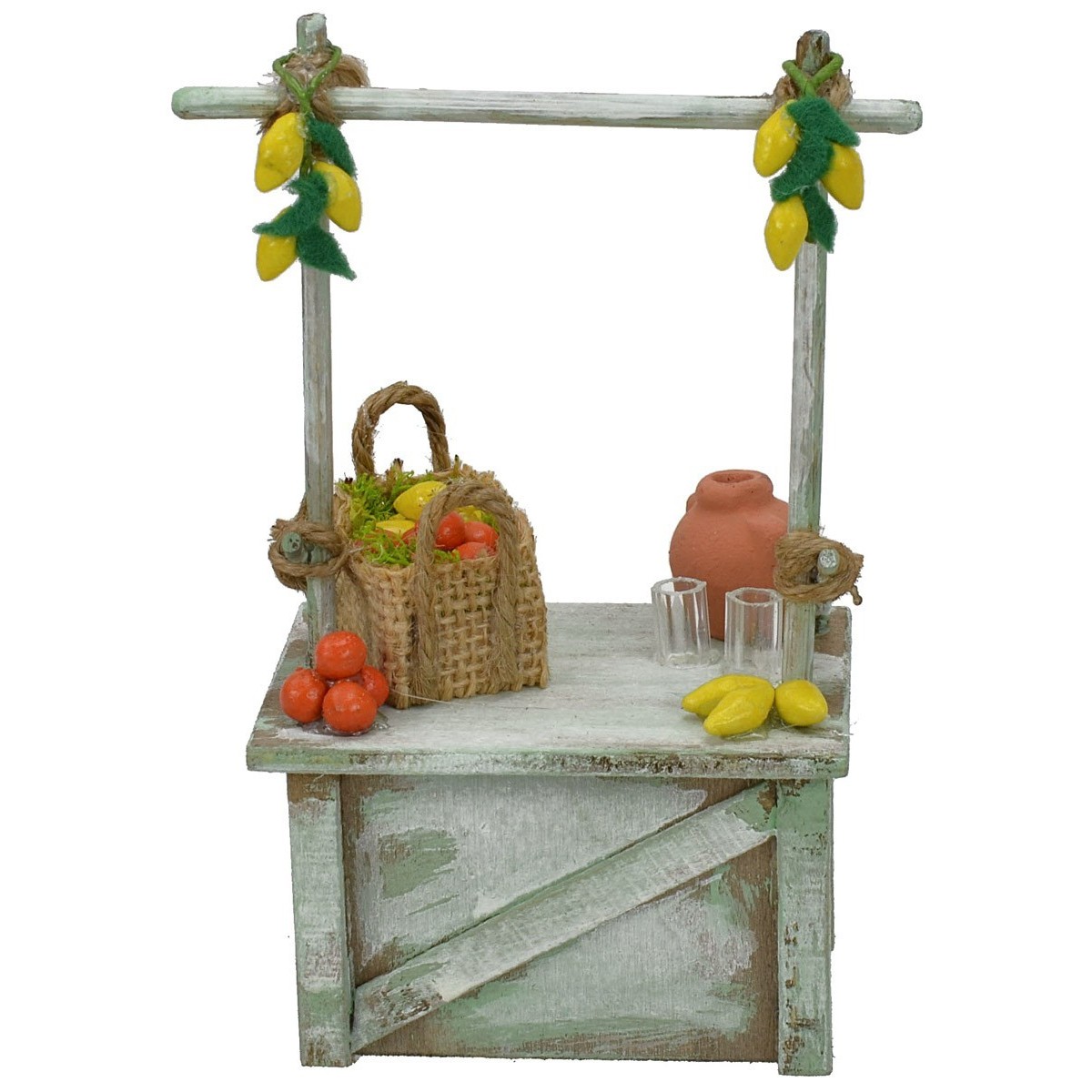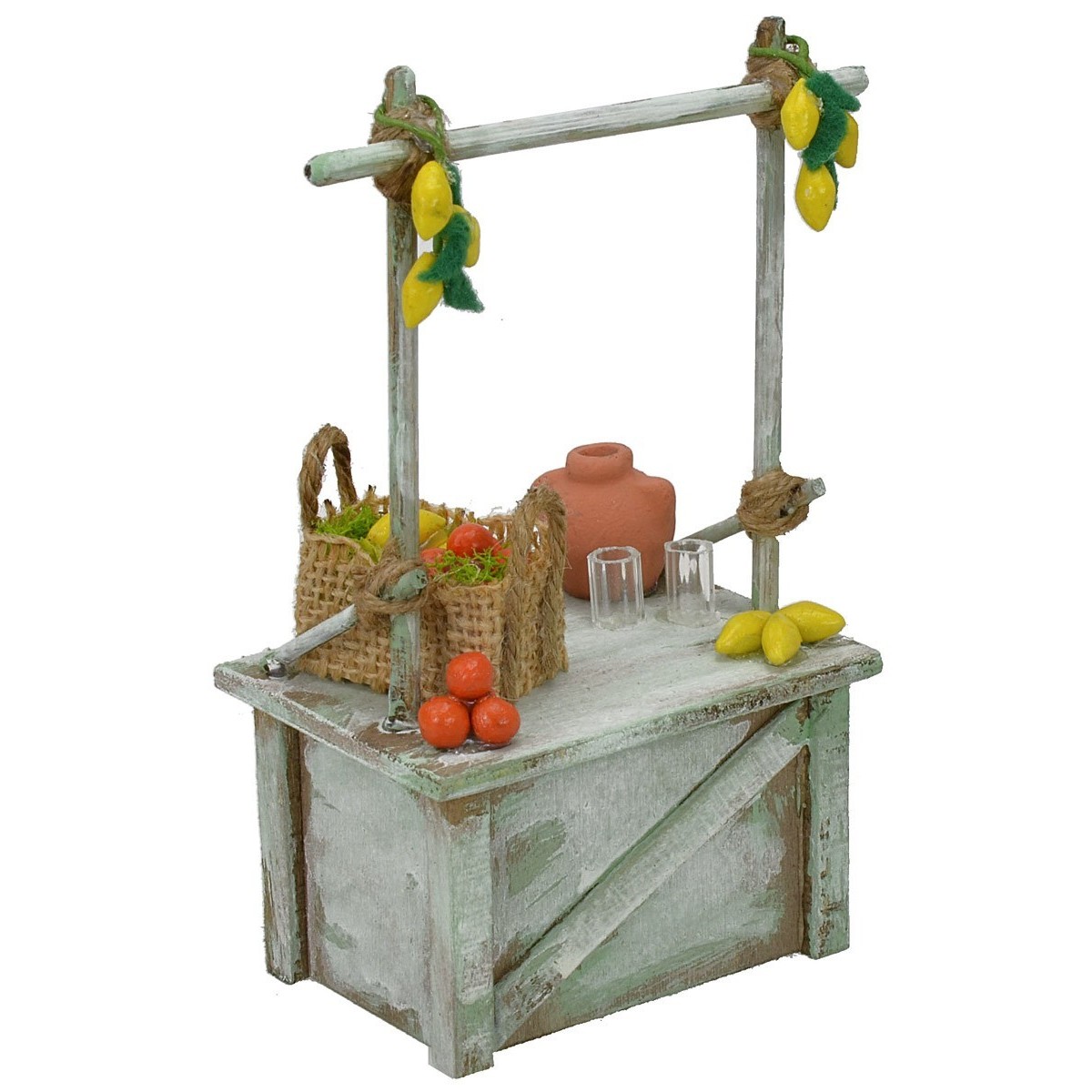 Banco venditore di spremute completo di cesto con arance, anfora e bicchieri. Questo articolo è stato realizzato da artigiani italiani ed consigliato per statue altezza 10-12 cm. Si precisa che essendo un articolo artigianale prodotto a mano potrebbe leggermente variare rispetto alla foto. Nella sezione MINUTERIE sono disponibili tanti accessori per presepe da abbinare per personalizzare ed arricchire questo prodotto.