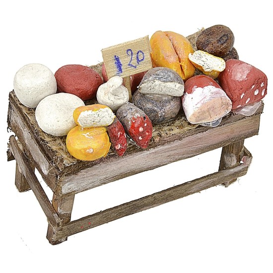 Banco in legno con salumi e formaggi in modelli assortiti, consigliato per statue altezza cm 8-10.