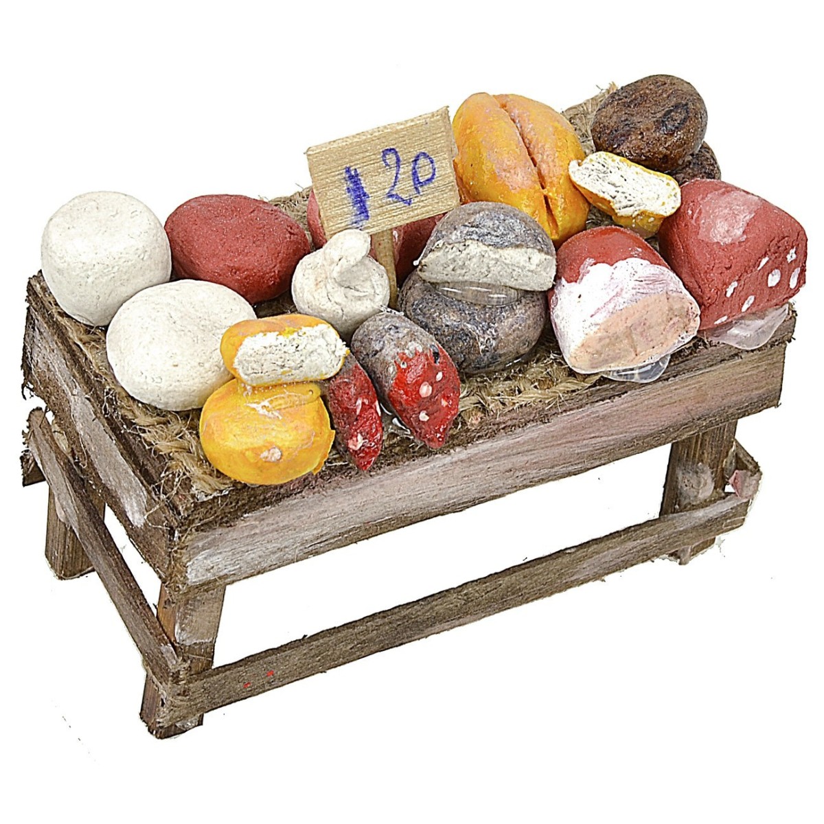 Bancarella presepe con salumi e formaggi cm 6,5x4x4 h. Mondo