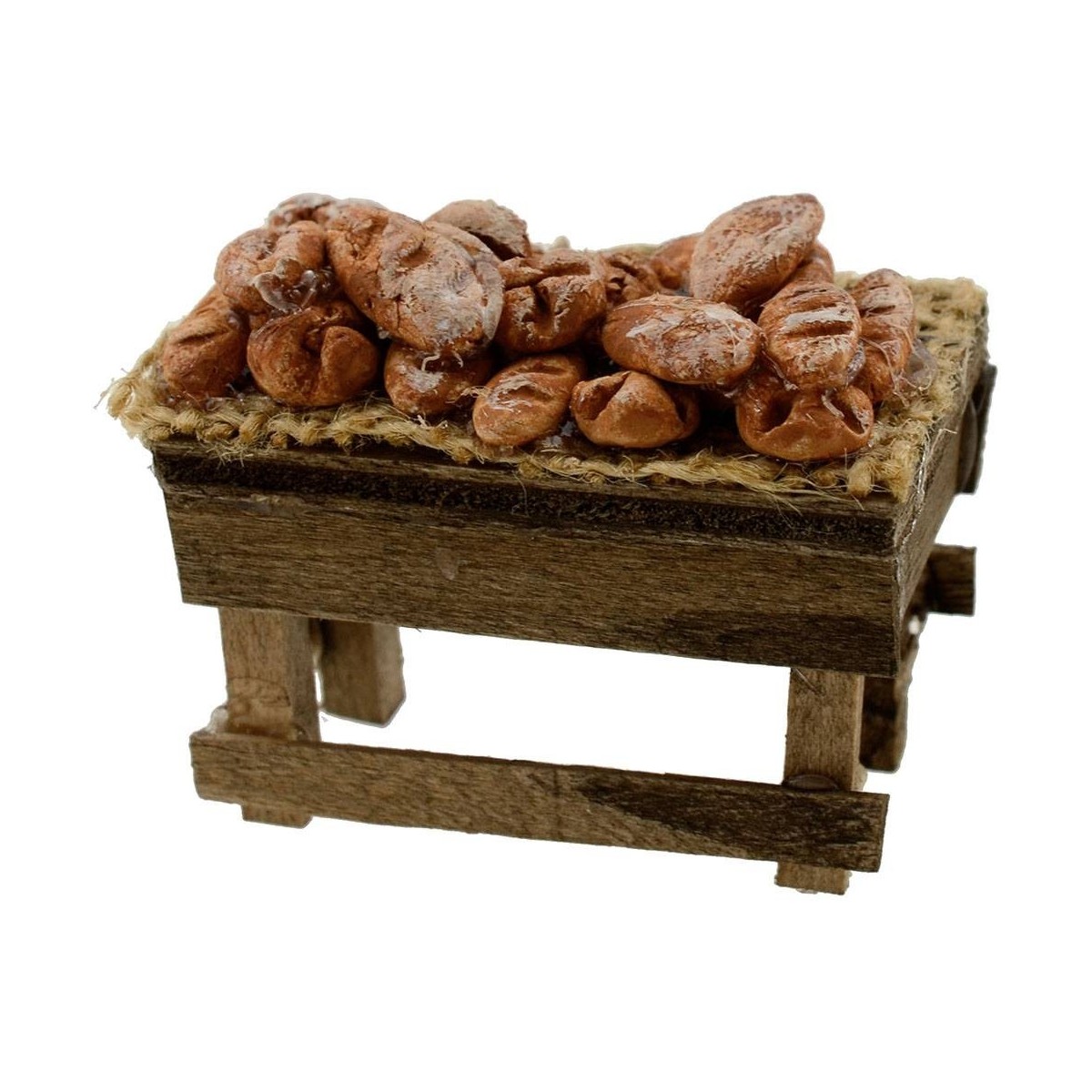 Banco in legno con pane in terracotta realizzato interamente a mano, consigliato per statue di altezza cm 6,5-8