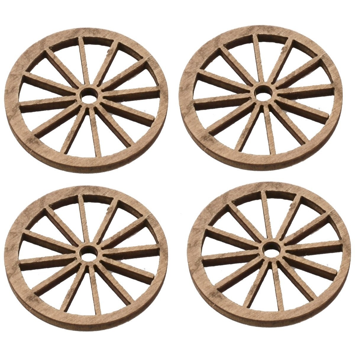 Set 4 ruote in legno ø 4 cm, per minuterie presepe e modellismo, consigliate per statue 8-10 cm di altezza.