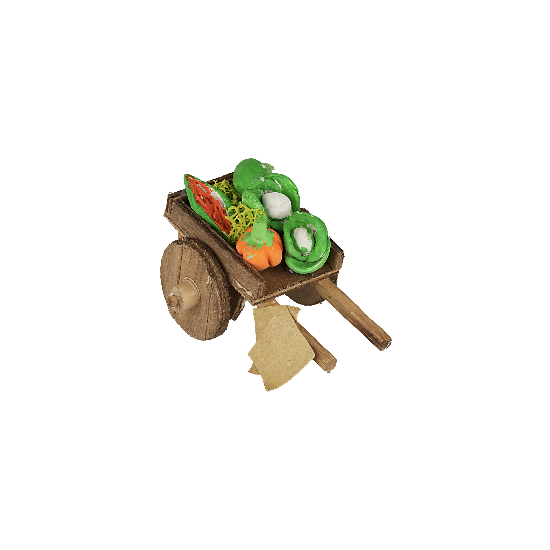 Carretto in legno per fruttivendolo consigliato per statuine di altezza compresa tra 8 e 10 cm. Si precisa che, essendo un prodotto realizzato interamente a mano, potrebbe presentare leggere variazioni rispetto alla foto.