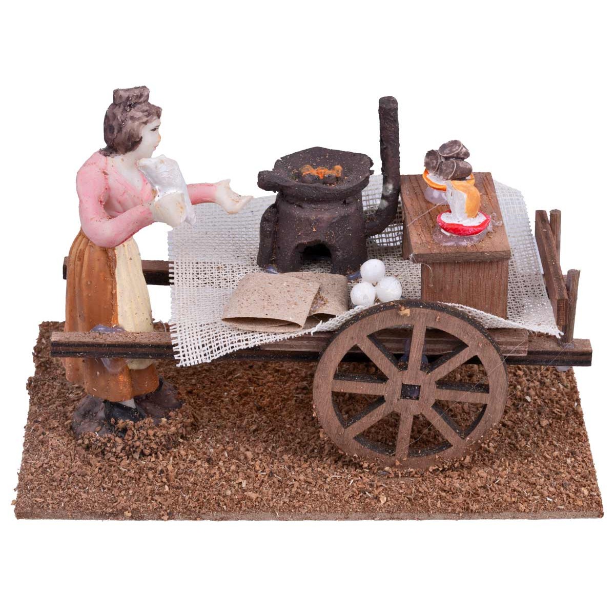 Carretto in legno con caldarrostaia, minuziosamente abbellito con un braciere pieno di castagne. Prodotto in Italia in maniera artigianale. Ogni articolo può differire leggermente dall'immagine mostrata, garantendo così un pezzo unico che aggiunge un autentico senso di tradizione e calore al tuo presepe.