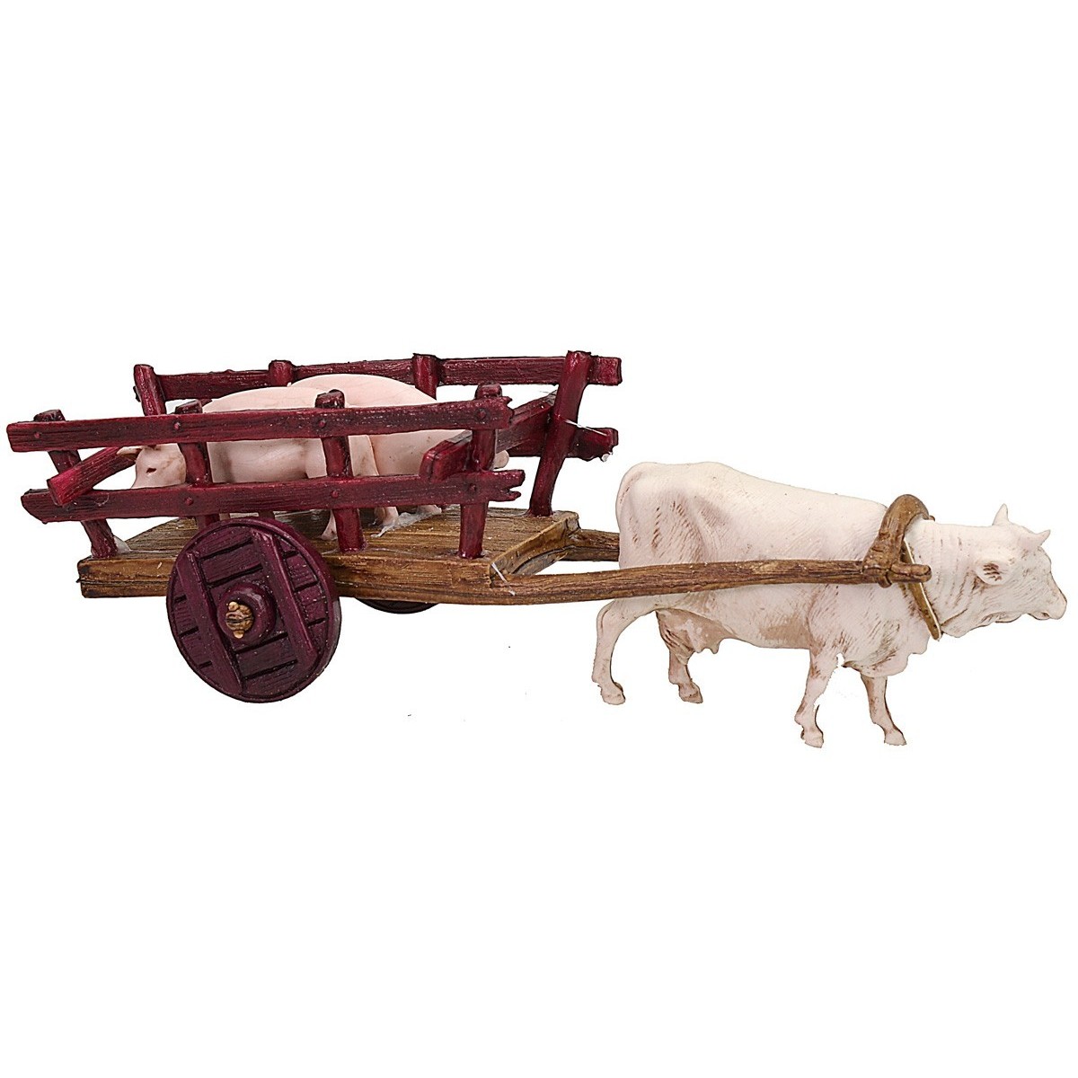 Tre carretti Landi Moranduzzo con bue al traino con carico di: paglia, botti e maiali. Consigliati per statue altezza 6-6,5 cm.