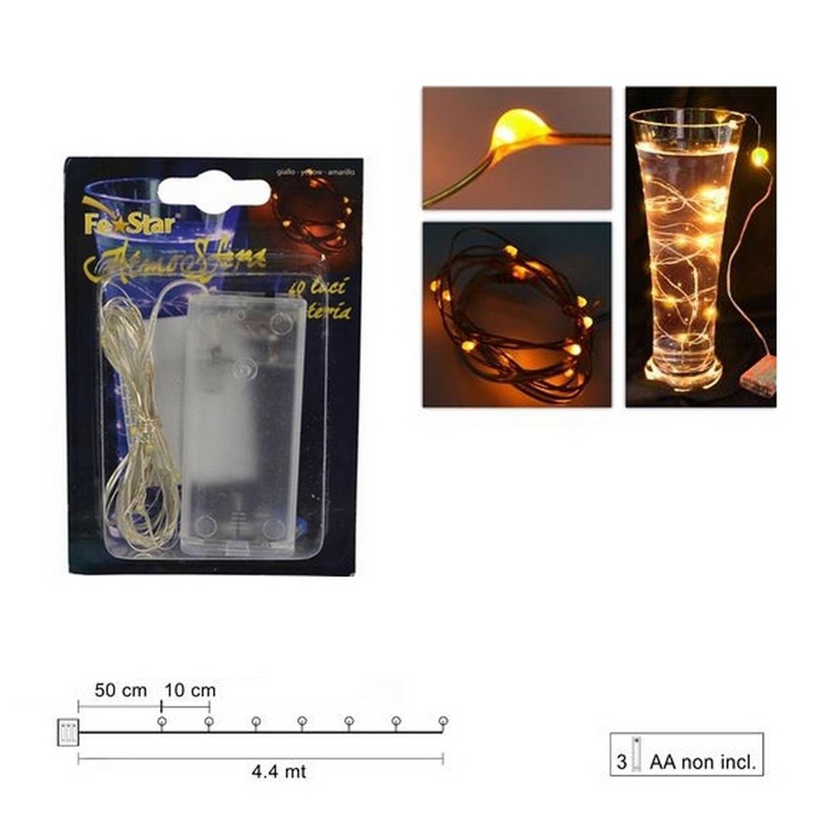 40 Nano led a luce bianca calda, con porta pile dotato di pulsante per l'accensione e lo spegnimento, per il funzionamento sono necessarie 2 Batterie AA NON incluse acquistabili separatamente CLICCA QUI